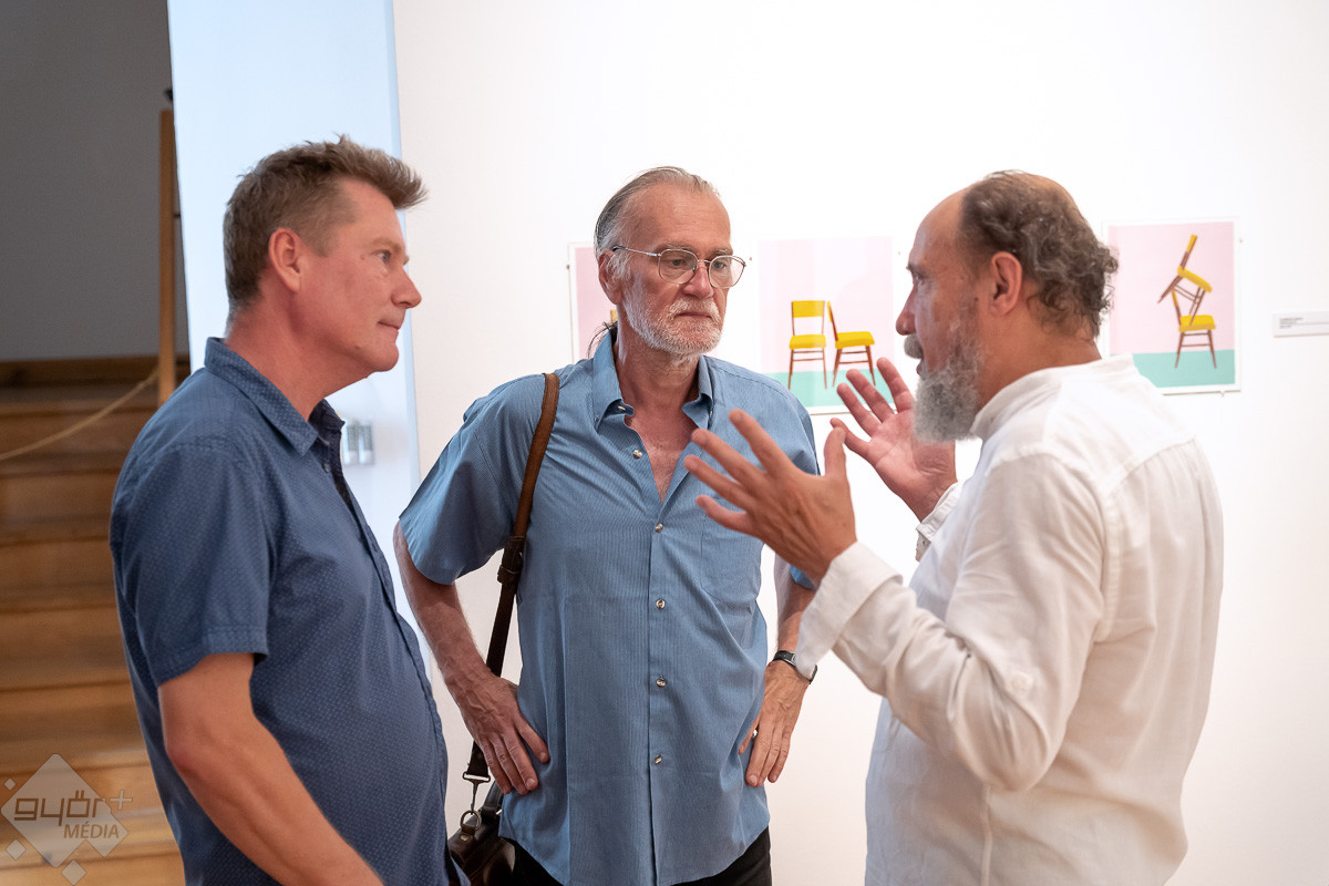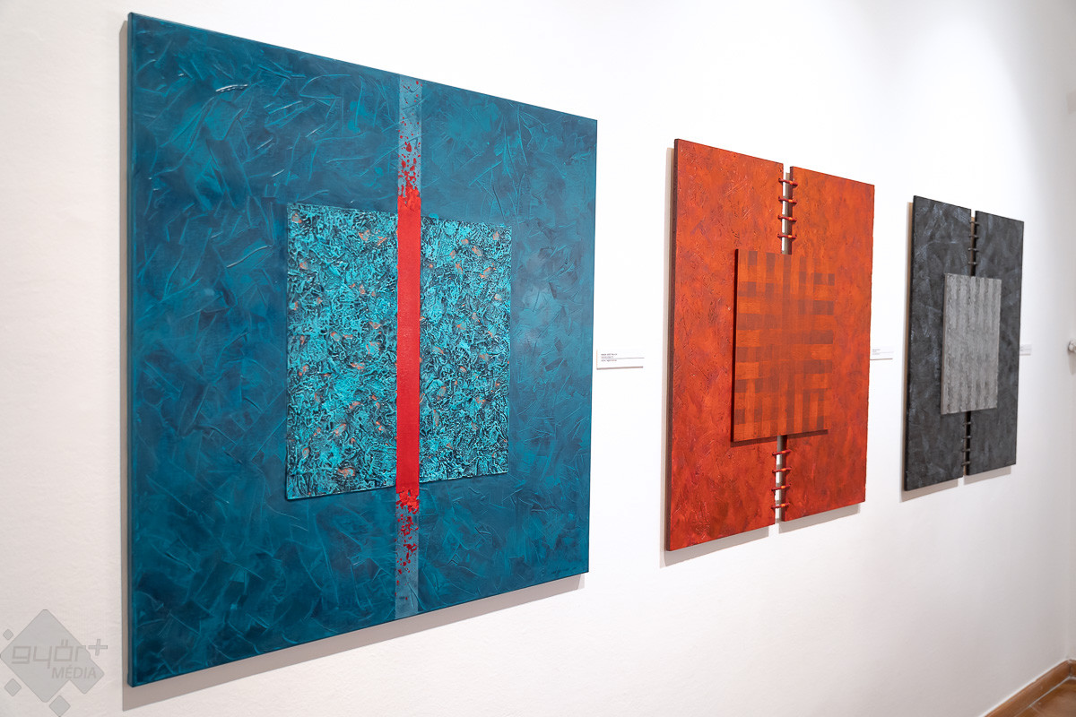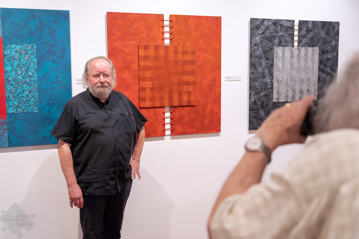 Utóbbi alkotó neve nem ismeretlen a győri közönség körében, már csak azért sem, mert éveken át tervezte a teátrum plakátjait. „Inspirálódtunk egymástól a közel 8 napban. Mint kiderült a konstruktív mértani és az organikus elemek ötvözete, találkozása, ütközése, egymásba simulása mind a négyünknél fellelhető. Magam nagyon kevés képi eszközzel élek több mint hét évtizede, és egyre csak szűkül az eszköztár. Talán a minimalizmushoz áll a munkásságom a legközelebb” – zárta szavaival múzeumi látogatásunkat Kelemen Benő Benjámin.