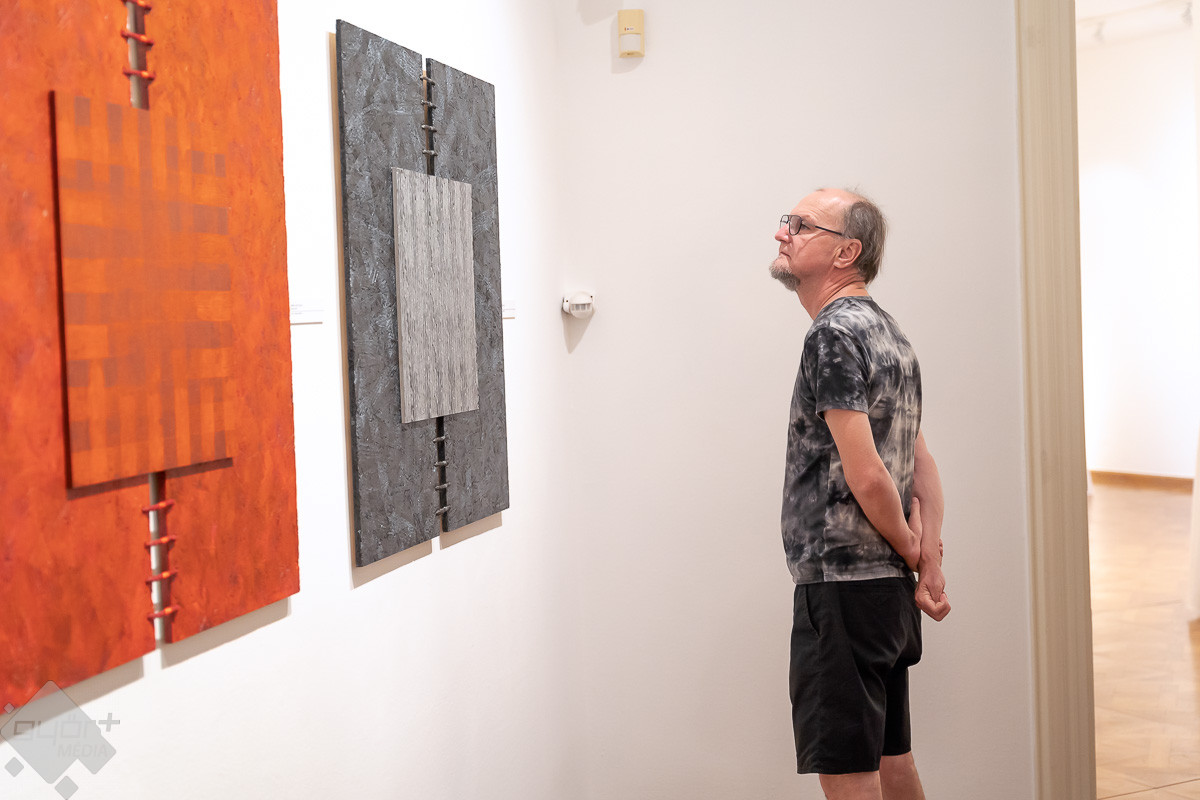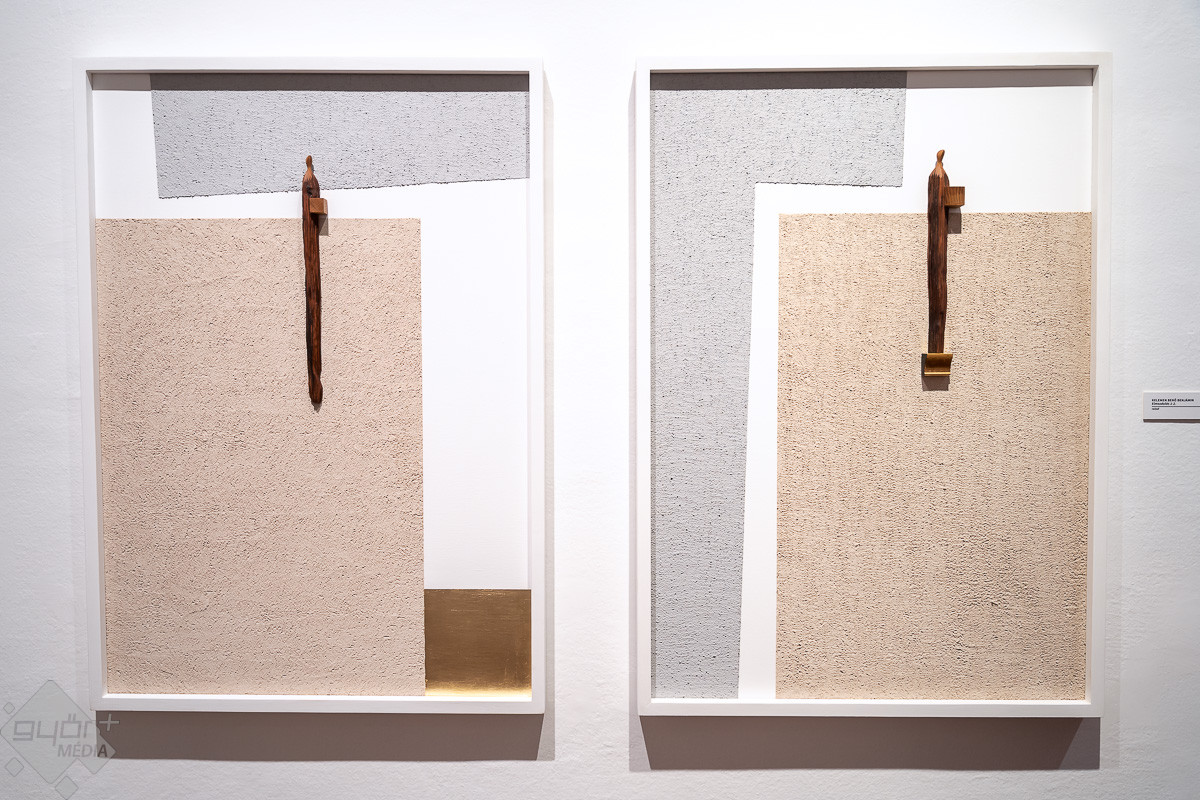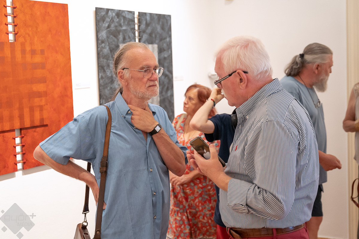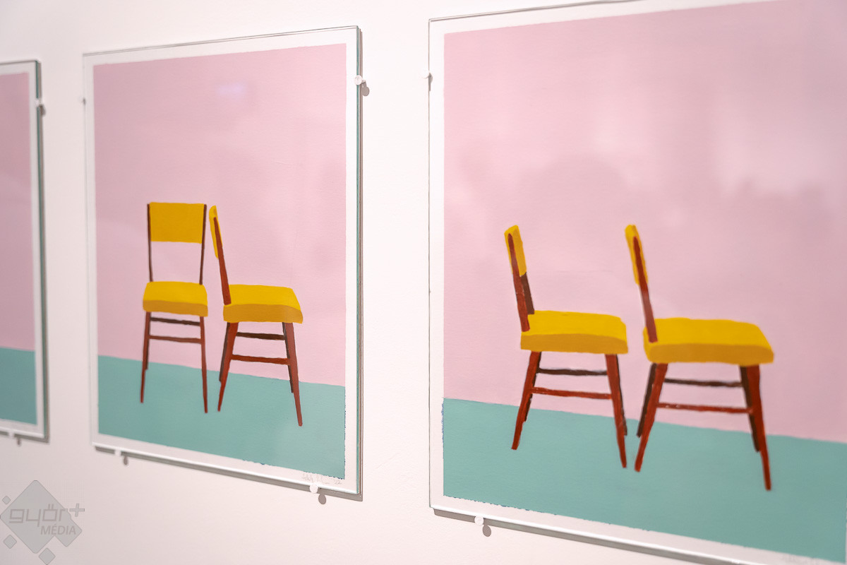 Utóbbi alkotó neve nem ismeretlen a győri közönség körében, már csak azért sem, mert éveken át tervezte a teátrum plakátjait. „Inspirálódtunk egymástól a közel 8 napban. Mint kiderült a konstruktív mértani és az organikus elemek ötvözete, találkozása, ütközése, egymásba simulása mind a négyünknél fellelhető. Magam nagyon kevés képi eszközzel élek több mint hét évtizede, és egyre csak szűkül az eszköztár. Talán a minimalizmushoz áll a munkásságom a legközelebb” – zárta szavaival múzeumi látogatásunkat Kelemen Benő Benjámin.