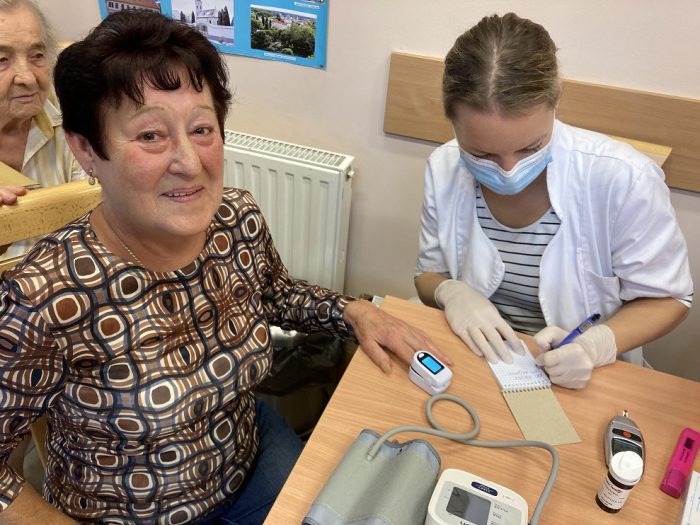 A terem egyik sarkában zajlott a vércukorszint és vérnyomásmérés. A gyors eredmények sokat segíthetnek az időseknek, hogy megtudják, milyen állapotban is vannak.