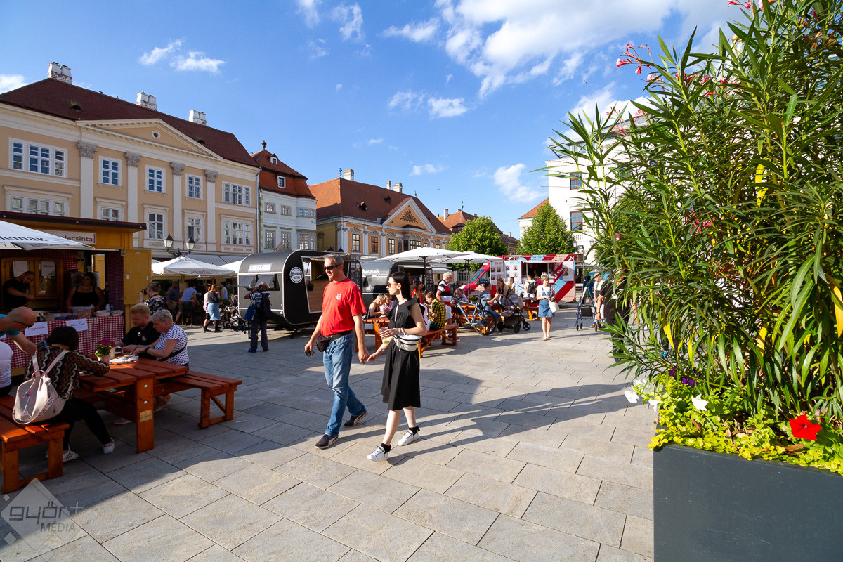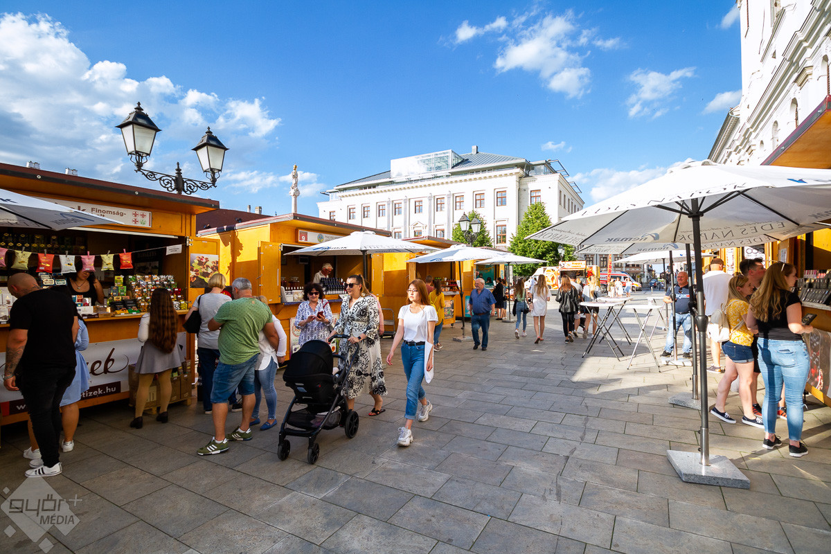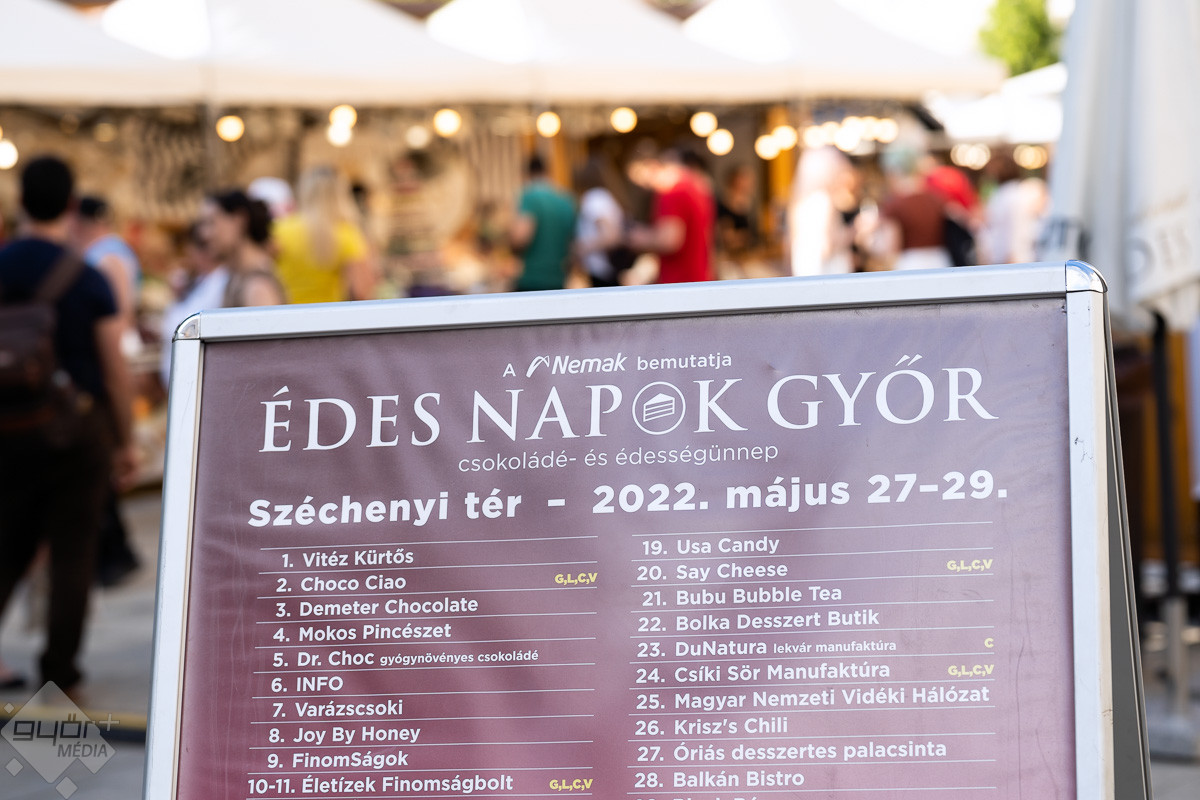 Péntek délután az utolsó simításokat is elvégezték a standokon a Széchenyi téren, így kora este megnyitotta kapuit Győrben az ország legnagyobb édességvására.