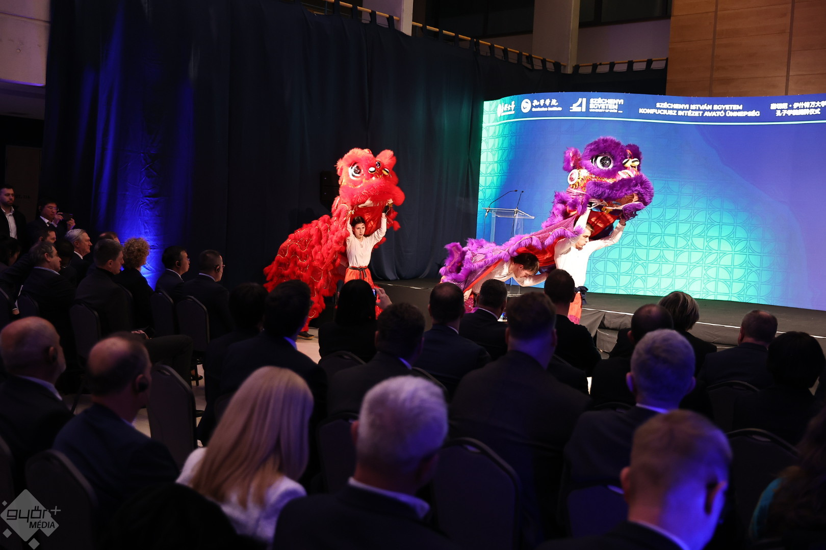 Az ünnepség részeként pénteken hivatalosan is felavatták a győri Konfuciusz Intézet tábláját, amit még 2025. november 15-én Pekingben adtak át, ekkor írták ugyanis alá azt a megállapodást a Széchenyi István Egyetem, a Zhejiang Jiaxing Egyetem, valamint a Kínai Nemzetközi Oktatási Alapítvány képviselői, amely a győri intézményben működő közös Konfuciusz Intézet létrehozását rögzíti. A díszes tábla leleplezését megelőzően a Hungarian Lion Dance formációja elképesztő, show elemekkel tarkított, jelmezes, úgynevezett oroszlántánc előadása adott a hivatalos ünnepségnek varázslatos keleti hangulatot.