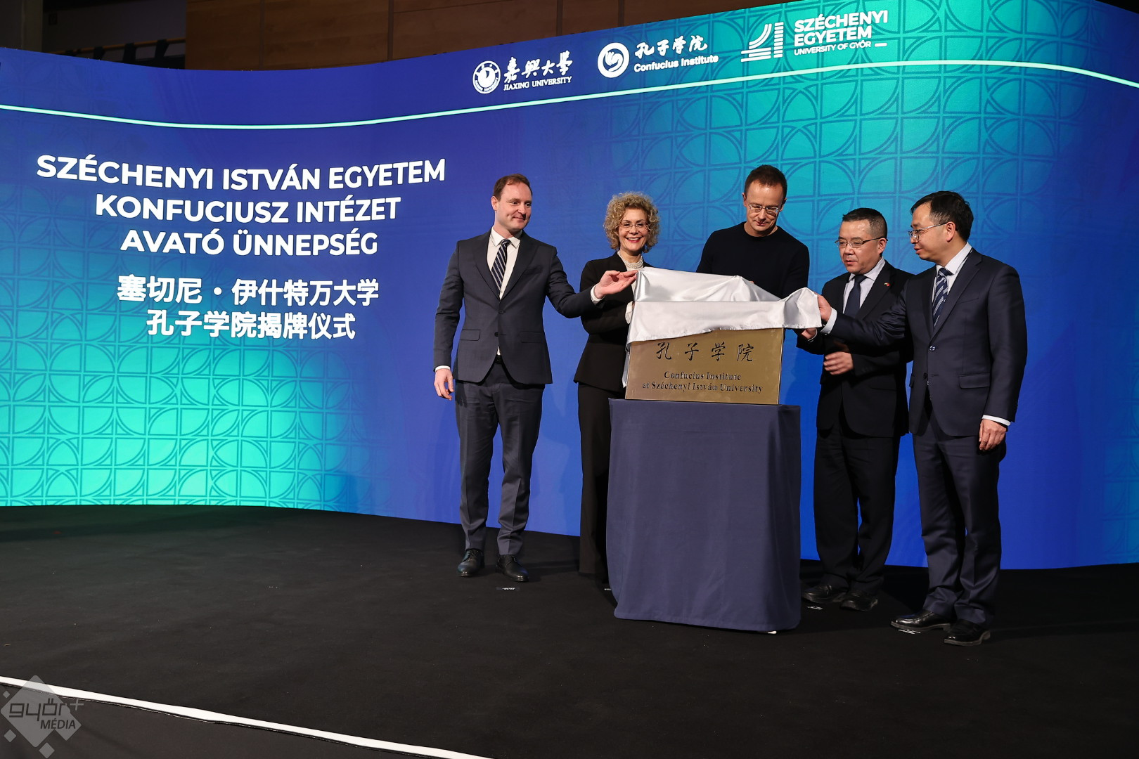 Megnyílt a Konfuciusz Intézet a győri Széchenyi István Egyetemen is, ami demonstrálja, hogy Európával ellentétben Magyarország ott ül az asztalnál, ahol az új világrend szabályait fektetik le - közölte Szijjártó Péter külgazdasági és külügyminiszter pénteken Győrben. A kínai-magyar kapcsolatok még soha nem voltak ilyen kiválóak – hangzott el az ünnepségen.