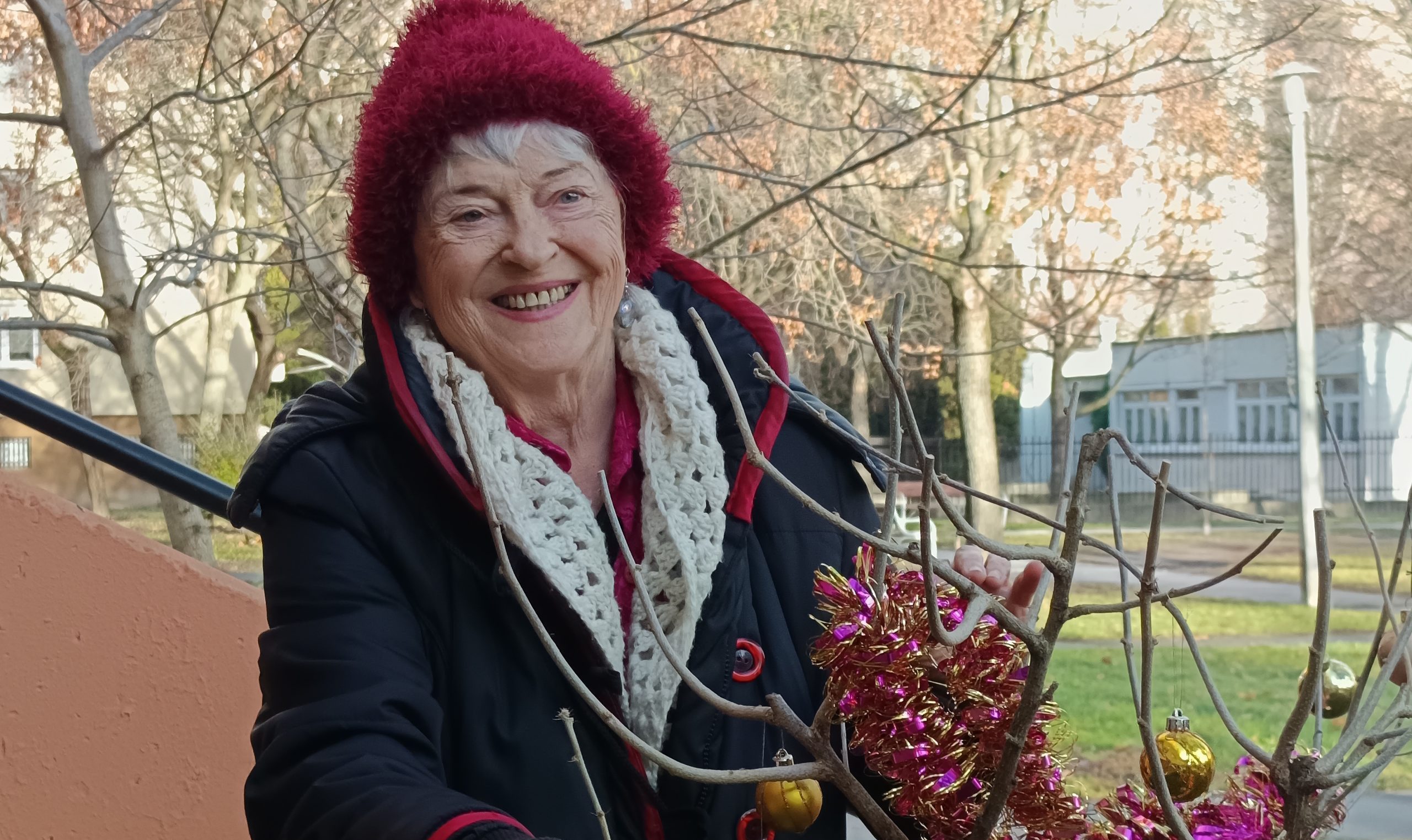 „Amikor egyedül maradtam, új barátnőm lett, összeismerkedtem egy nyugdíjas pedagógussal, akinek annyi idős a kutyája, mint az enyém. Arra gondoltam, nem állítok karácsonyfát, helyette inkább a megmaradt díszeimet felrakom a házunk előtti bokrokra, amiket még a férjem ültetett. Terike barátnőmnek nagyon megtetszett az ötlet és ő is elhozta a saját díszeit. Feldíszítettük a cserjéket, s olyan jó érzés volt, hogy mégis van karácsonyfánk. Ezután jött Zsuzsika, a másik barátnőm, és ő is feldíszített egy bokrot. Így van nekünk azóta közös karácsonyunk” – meséli mosolyogva a csupa szív asszony.