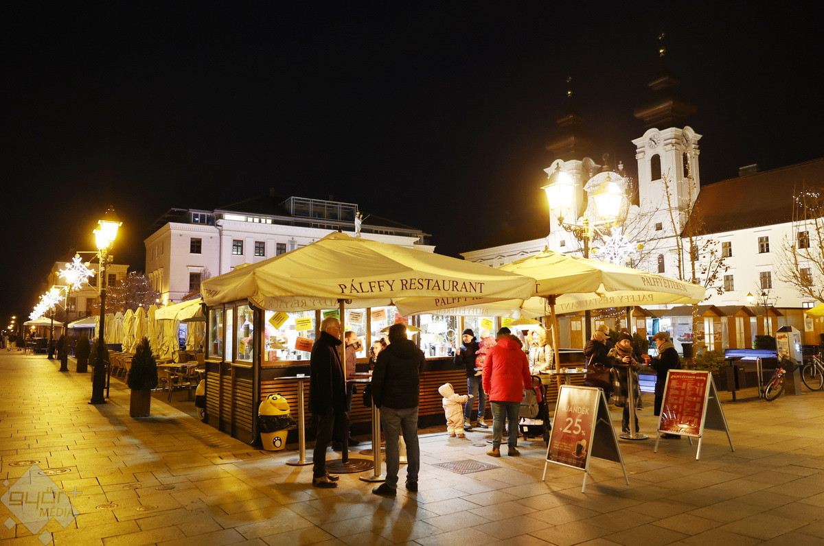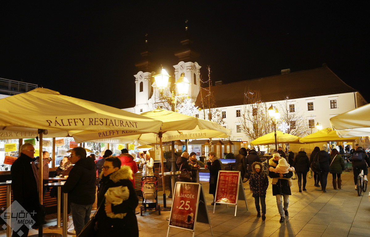 A kirakodóvásár népszerű a Megyeháza előtt és a Széchenyi téren is, a forralt bor remekül fogy a Baross úton, a Dunakapu téren is szinte megállás nélkül forog az óriáskerék.