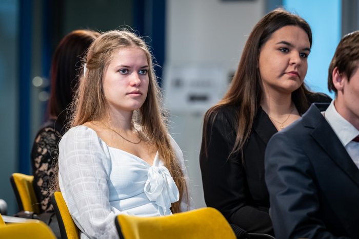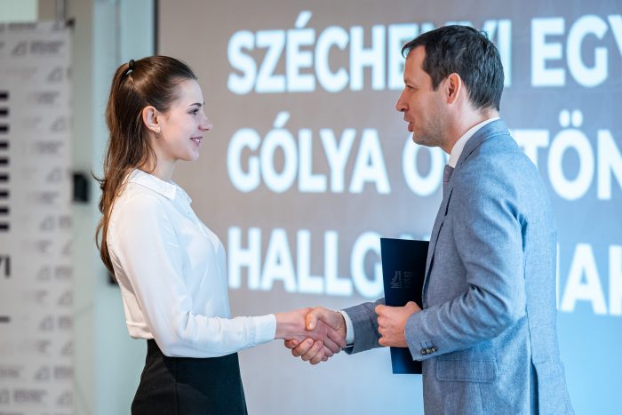 „Jogásznak készülök, és bár elég messzire kellett jönnöm otthonról, egyáltalán nem bántam meg a döntésemet, mert nagyon jó helyre kerültem. Kezdem érezni, hogy mit jelent széchenyisnek lenni” – mondta el a Hajdú-Bihar vármegyei Komádiból érkezett Gólián Viktória. Hozzátette, korábban is voltak már tudományos diákköri eredményei, és a jövőben is szeretne ezzel foglalkozni.