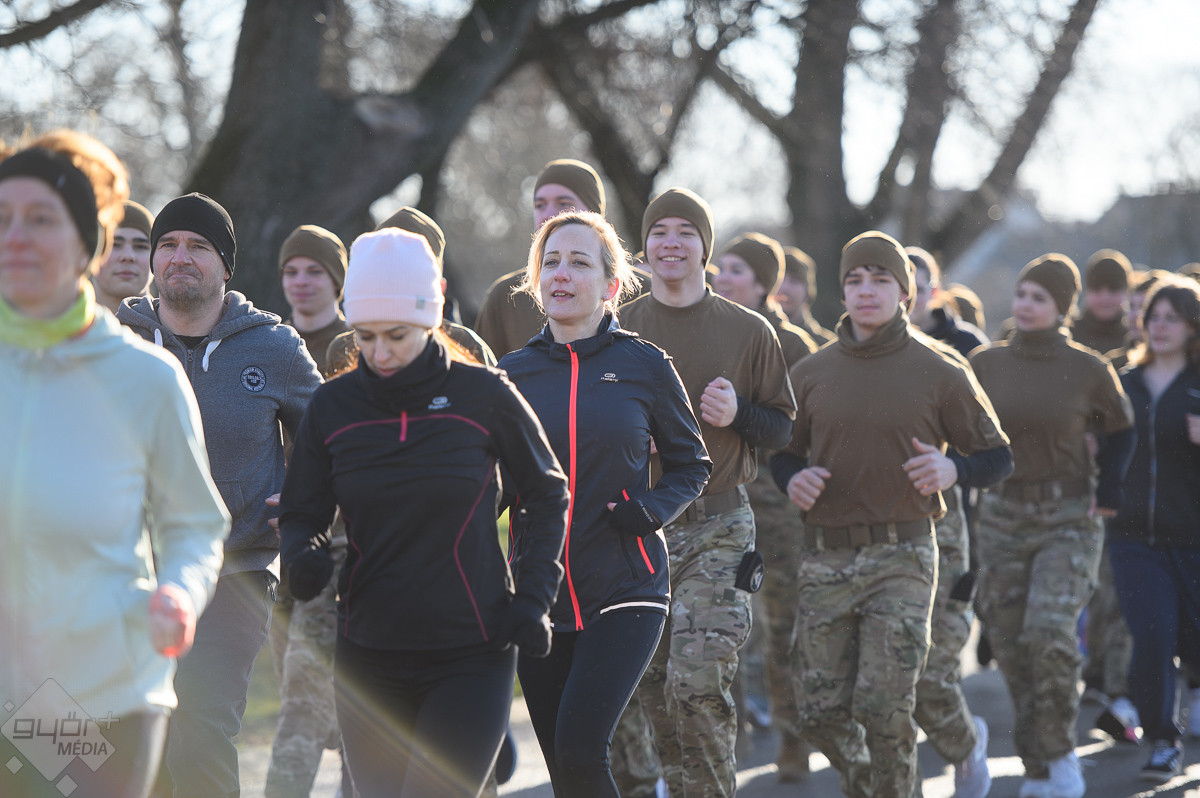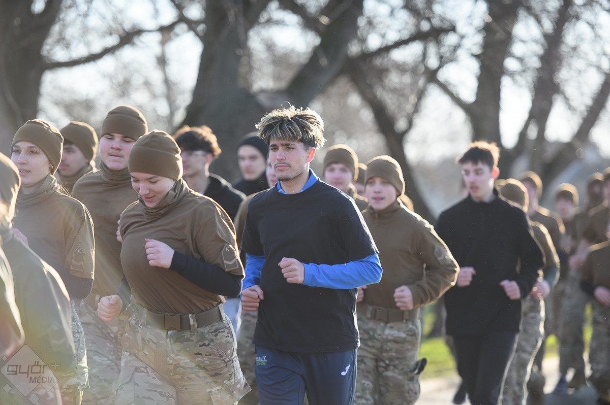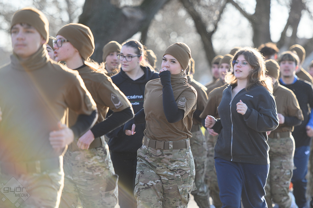 Több száz méteren át együtt, egy ütemre futottak a győri területvédelmi katonák és a Bercsényi-iskola kadétjai február 18-án. A közös mozgás nem verseny volt, hanem üzenet: egység, összetartás és barátság – a katonai sport nemzetközi napján.