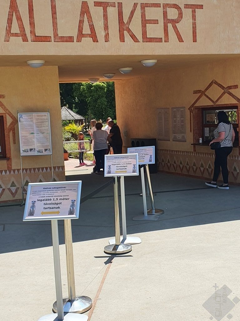 Pénteken délelőtt rég nem látott mértékben foglalják el gépjárművek a főbejárat előtti parkolóhelyeket, sőt, a bejutáshoz egy kicsit várakozni is kell. Egyáltalán nem többet, mint máskor, viszont sokkal biztonságosabban: az állatkert üzemeltetői másfél méterenként jelzik, mi az a minimális távolság, amelyet egymástól tartani kell.