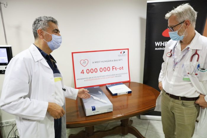 Egy tizennyolc millió forintos életmentő eszközzel, a súlyos állapotban lévő betegek kezelésében használható, ablációs katéteres készülékkel bővült a Petz Aladár Egyetemi Oktató Kórház szívkatéteres laboratóriuma, amihez négymillió forintot adományozott a WEST HUNGÁRIA BAU Kft.