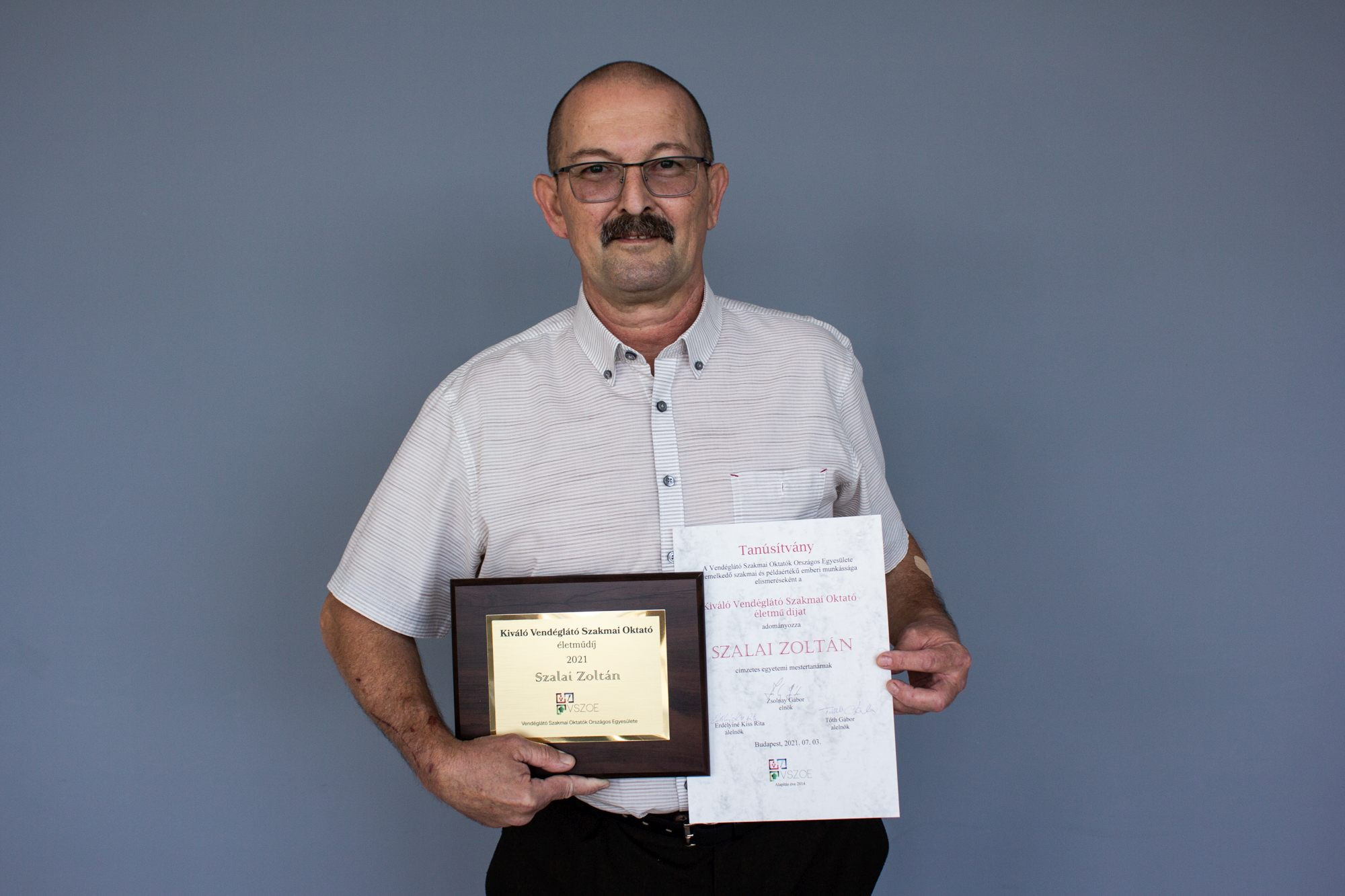 Az egyik legmagasabb szakmai elismerést, a Vendéglátó Szakmai Oktatók Országos Egyesülete életműdíját vehette át nemrégiben Szalai Zoltán, a győri Széchenyi István Egyetem Turizmus Tanszékének tanszéki mérnöke. A címzetes mesteroktató több mint egy évtizede tanítja a hallgatókat az ételkészítés fortélyaira.