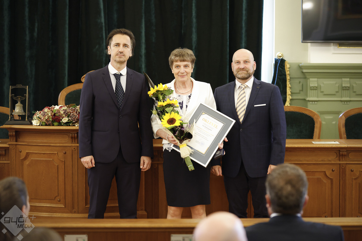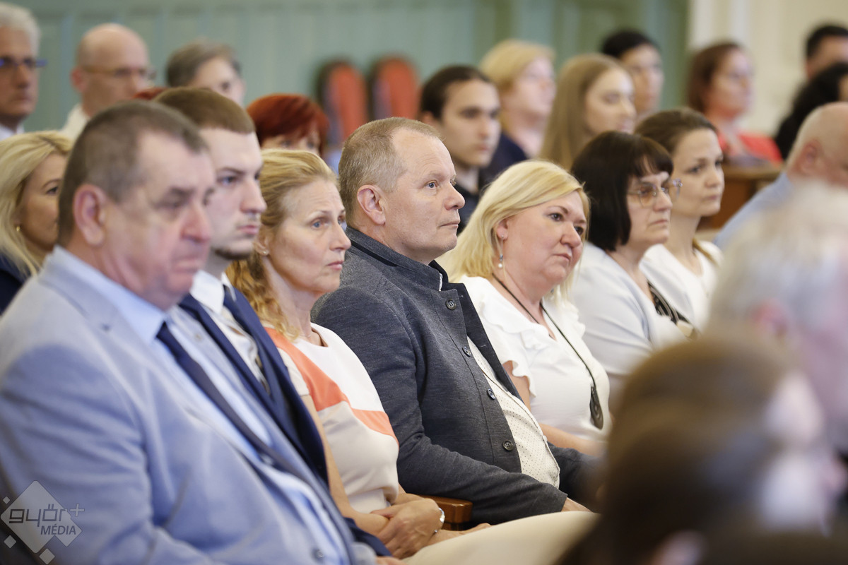 A Győr Oktatásügyéért díjat Csatóné Zsámbéky Ildikó a Révai Miklós Gimnázium és Kollégium főigazgató-helyettese, Józsa Tamás a Győri Szakképzési Centrum Hild József Építőipari Technikum igazgatója és Mizsérné Szabadvári Márta a Nagybácsai Óvoda igazgatóhelyettese vehette át.