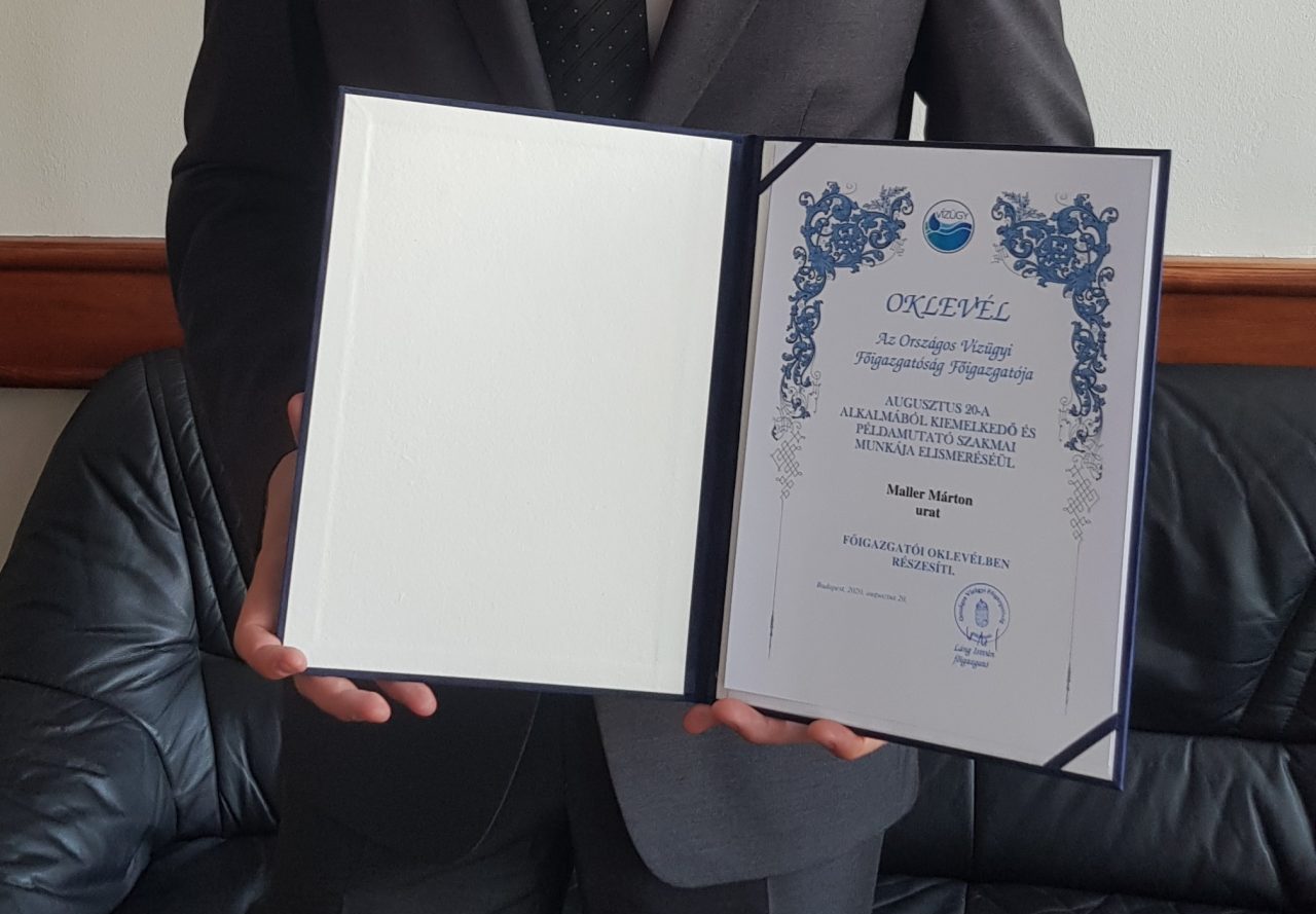 Maller Márton, az Észak-dunántúli Vízügyi Igazgatóság Árvízvédelmi és Folyógazdálkodási Osztályának szakágazati vezetője a vízügyi ágazatban végzett magas színvonalú munkájáért augusztus 20. állami ünnepünk alkalmából Főigazgatói Dicsérő Oklevél elismerésben részesült. Márton a kitüntetést a szeptember 4-i Belügyminisztériumban tartott ünnepségen vehette át.