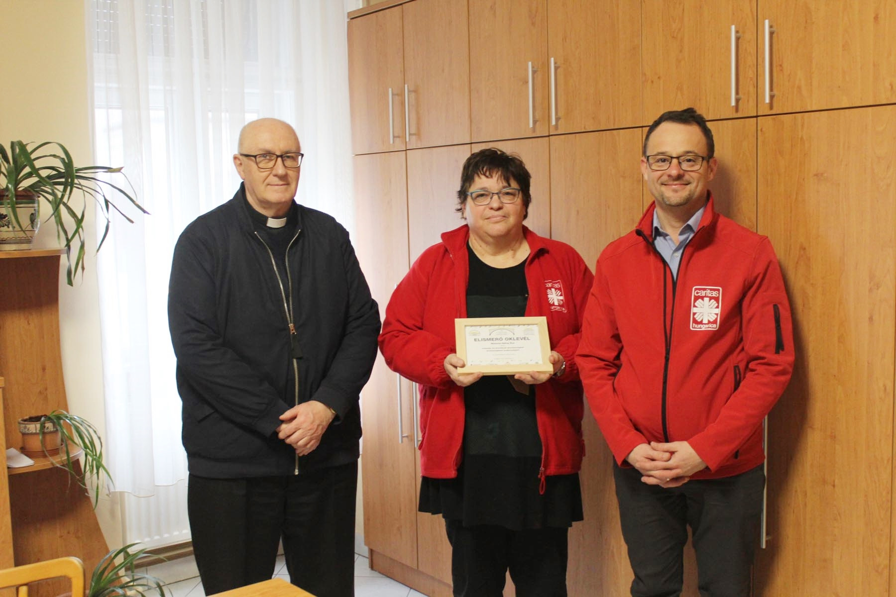 Az elismerő oklevelet január 24-én Lőrincz Attila, szervezet igazgatója és Kapui Jenő mosoni plébános közösen adta át a díjazottnak.