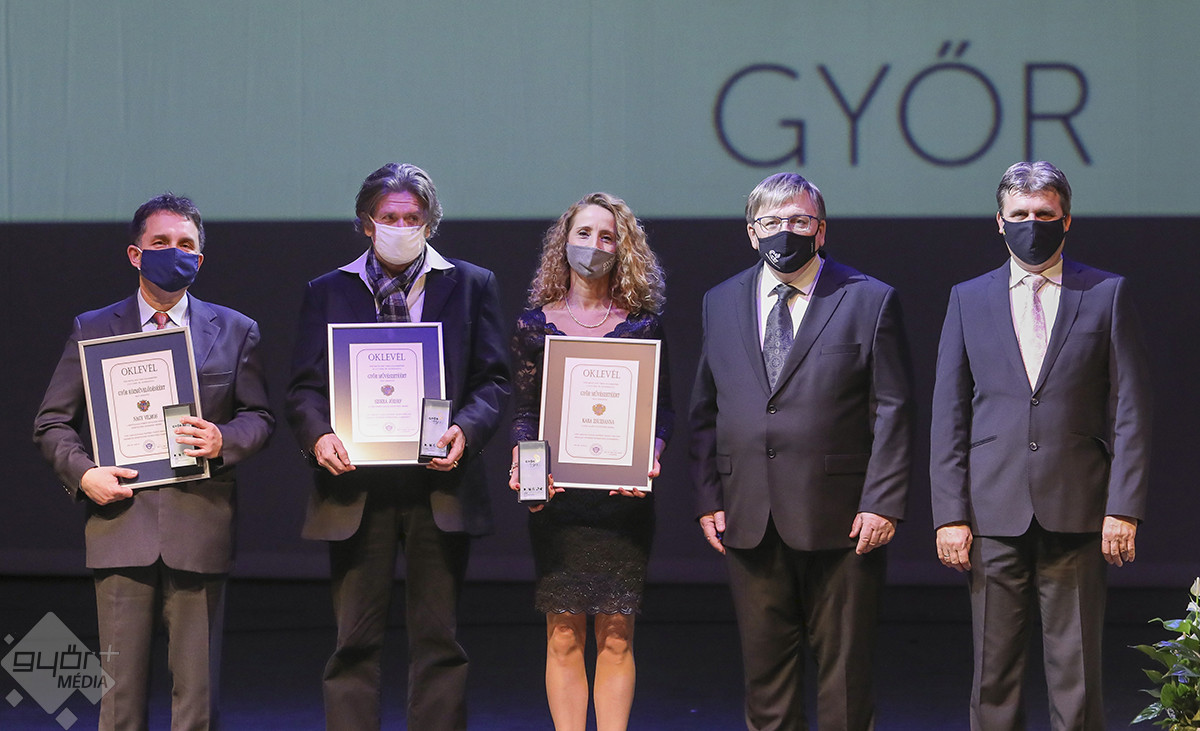 A polgármester a kulturális intézmények járványhelyzetben tanúsított helytállásáról is szólt, hiszen amikor bezártak a színházak és a kiállítótermek, a győri alkotók akkor is eljuttatták művészetüket a közönséghez. „Van tehát mit ünnepelnünk, hiszen a győri kultúra él, lüktet, fejlődik. Mi pedig azért dolgozunk, hogy ennek a jelenleg is magas színvonalú kultúrának új lendületet, új lehetőségeket teremtsünk” – mondta a polgármester, aki köszönetet mondott azoknak, akik nap mint nap a győri kultúráért dolgoznak, majd Rózsavölgyi Lászlóval, az Oktatási, Kulturális, Sport és Turisztikai Bizottság elnökével átadta a város elismeréseit.