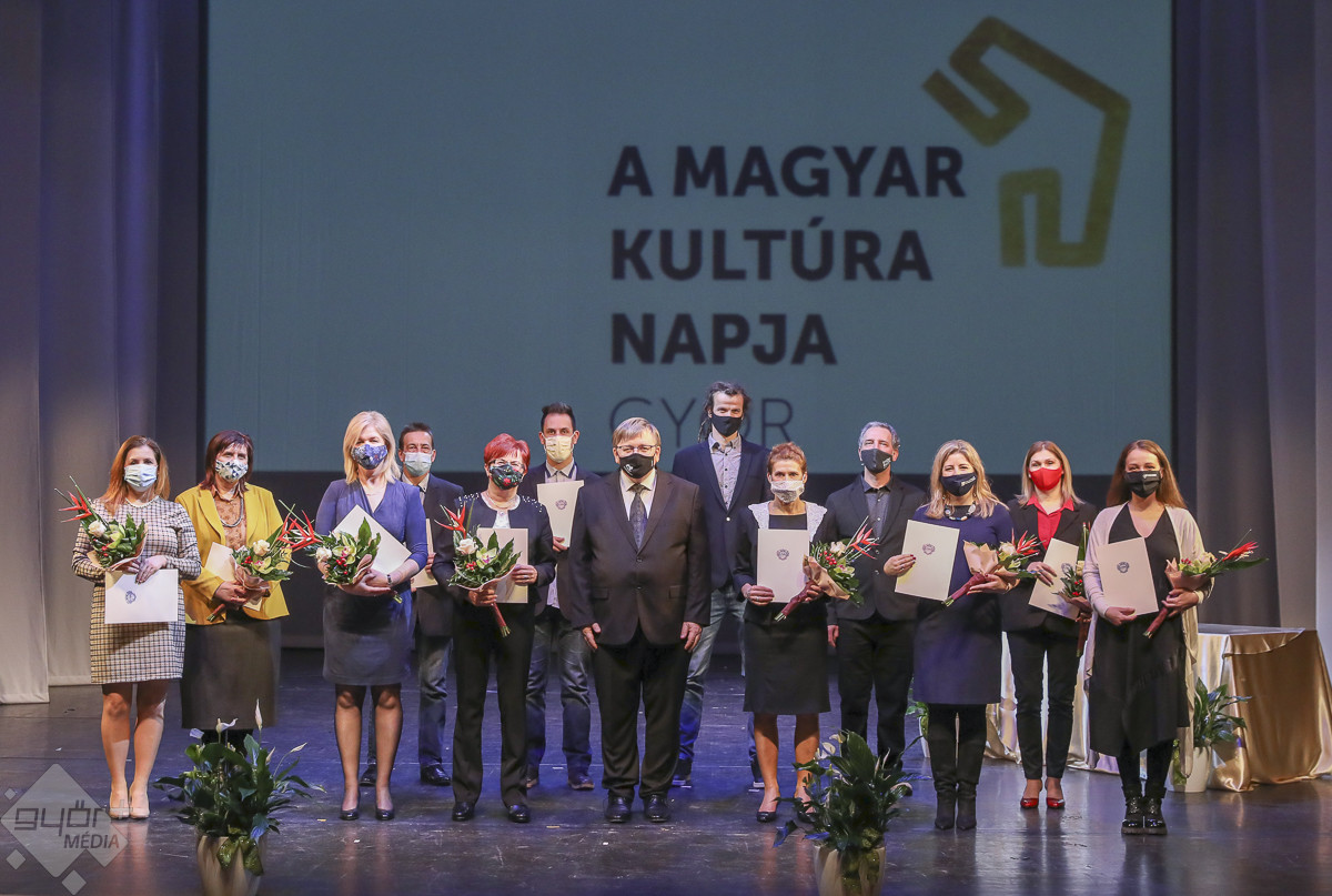 Kara Zsuzsanna balettművész és Szikra József színművész Győr Művészetéért, Nagy Vilmos, a Ménfőcsanak–Gyirmót Művelődési Központ igazgatóhelyettese Győr Közművelődéséért díjat vehetett át, míg Farsang Sándor festő-grafikusművész posztumusz városi elismerést kapott. A magyar kultúra napi városi ünnepség a Győr Plusz tévében és a város hivatalos Facebook-oldalán is látható.