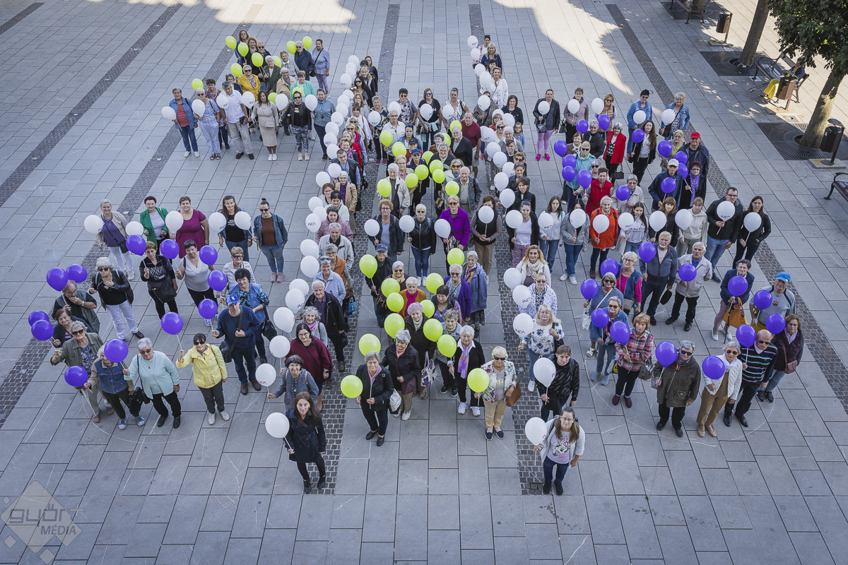 A Városháza előtti téren gyülekeztek a résztvevők, akik színes lufikat kaptak, hogy részesei legyenek egy “élőképnek”. Az alakzat, amely a szervezők útmutatása alapján kirajzolódott az amőba játékot jelenítette meg, ami arra utalt, hogy néhány percnyi napi agytornával is karbantartjuk szellemi frissességünket. Az eseményen  dr. Laczkovits-Takács Tímea győri alpolgármester üdvözölte a megjelenteket.