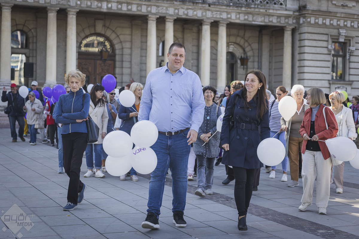 Szeptember 21-én van az Alzheimer világnapja. Ilyenkor szerte a világon látványos eseményekkel, programokkal hívják fel az egészségügyi szakemberek a figyelmet, az egyre több embert érintő betegségre és az időskori demenciára. Győrben az Egyesített Egészségügyi és Szociális Intézmény rendezett világnapi sétát a belvárosban. A megmozduláson több százan vettek részt.