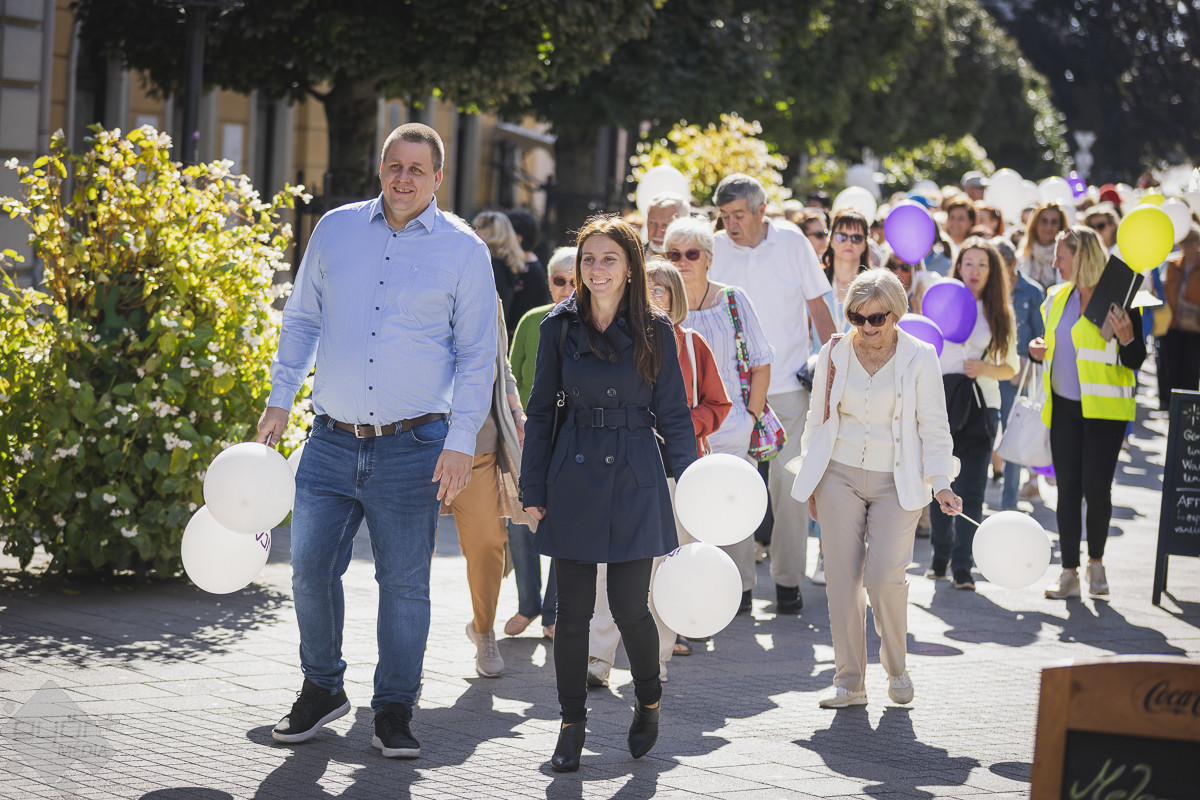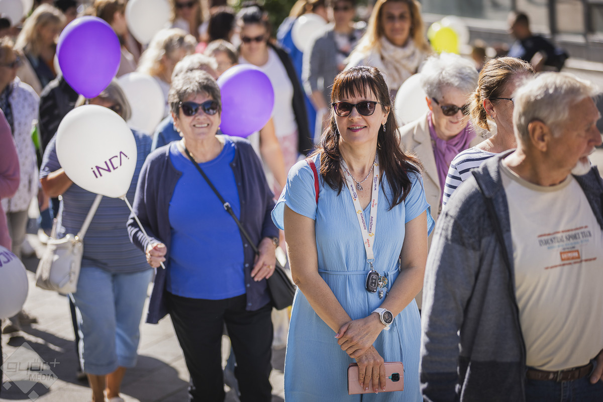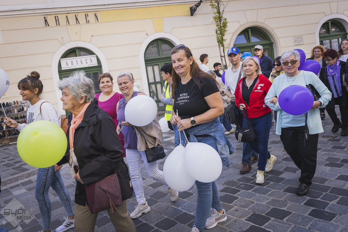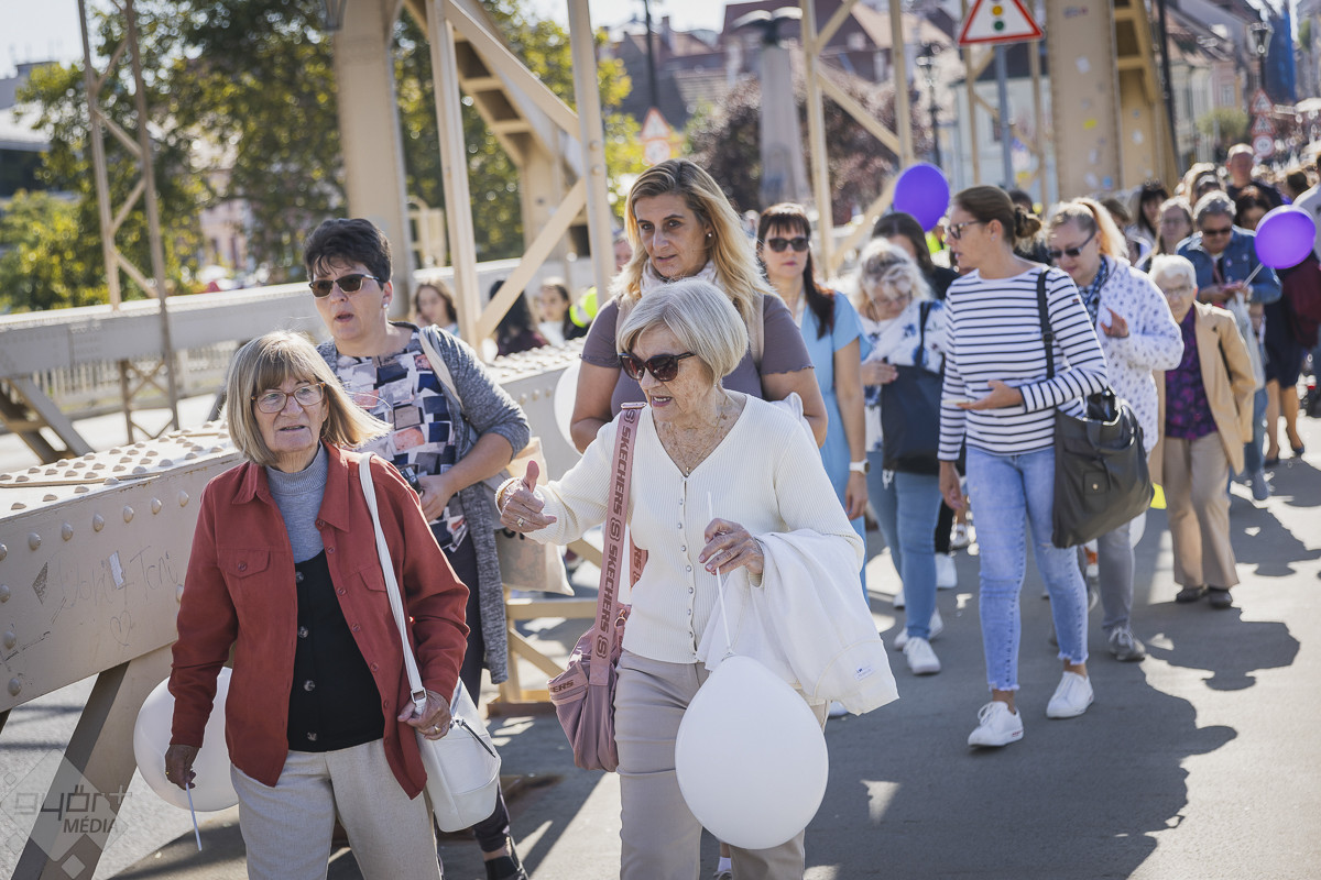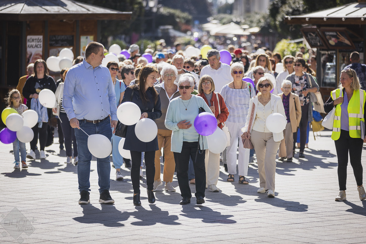 “Egy olyan esemény kapcsán vagyunk itt és megyünk végig a belvároson, aminek fontossága rendkívüli. Lényeges, hogy a betegségben szenvedők  családtagjai is rendelkezzenek információkkal. Hívjuk fel a figyelmüket arra, hogy ki és hogyan tud segíteni. A kulcs az , hogy együtt tudjunk gondolkodni és dolgozni.”  – emelte ki dr. Laczkovits-Takács Tímea. Az alpolgármester hozzátette, az érintettek merjenek segítséget kérni, mert van aki tud segíteni.