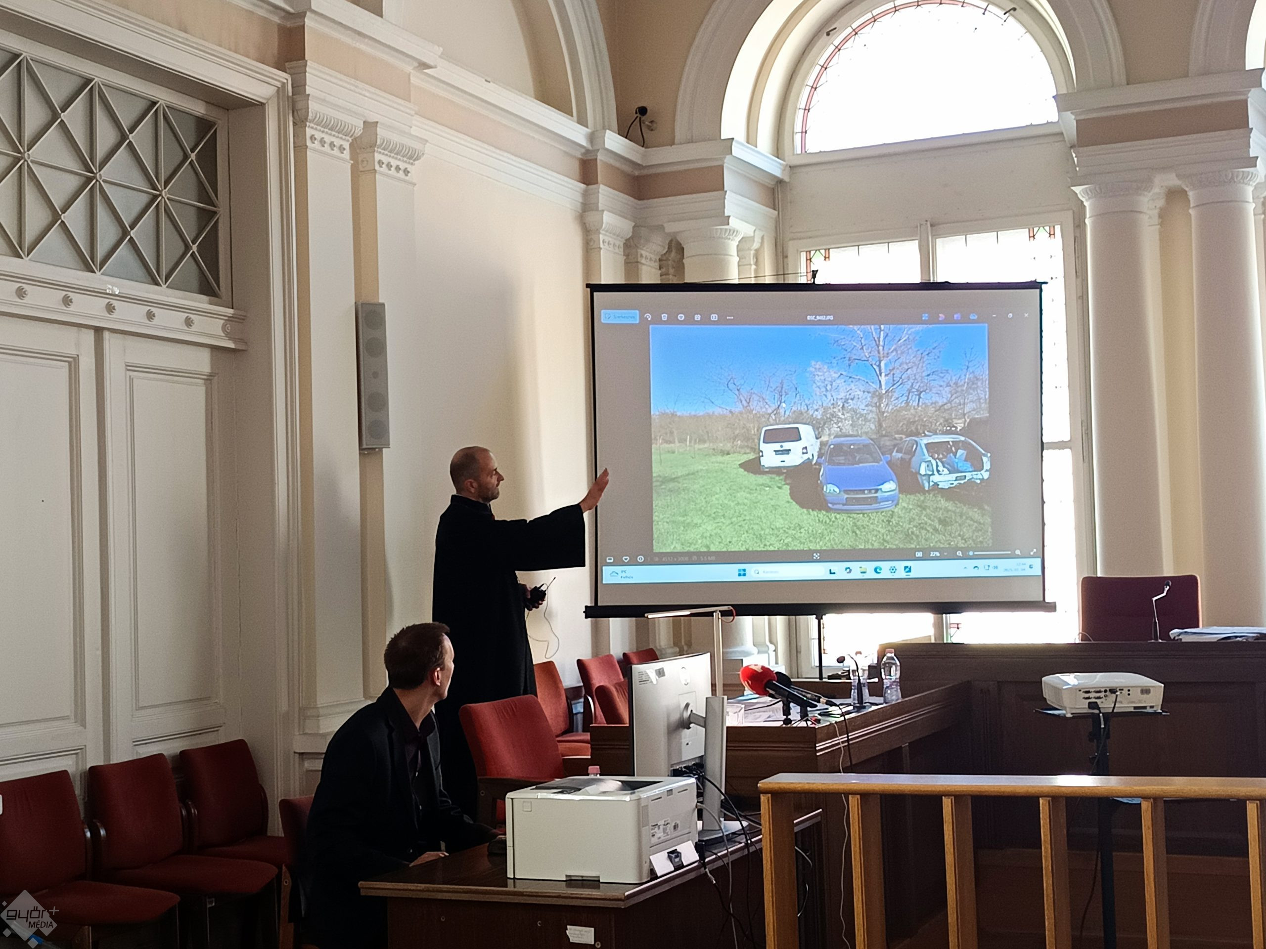 Fotókat vetítettek a bizonyítékokról, a megtalált személyes tárgyakról és M. Zoltán autójáról is, amiben vérnyomokat és kevert DNS-t rögzítettek.