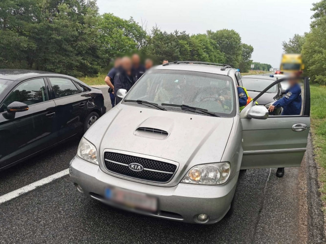 Hétfőn reggel, nem sokkal háromnegyed nyolc előtt ellenőriztek egy autót az M1-es autópályán, Győr térségében.