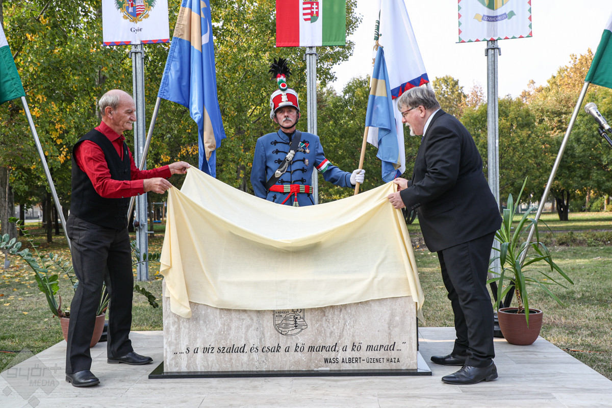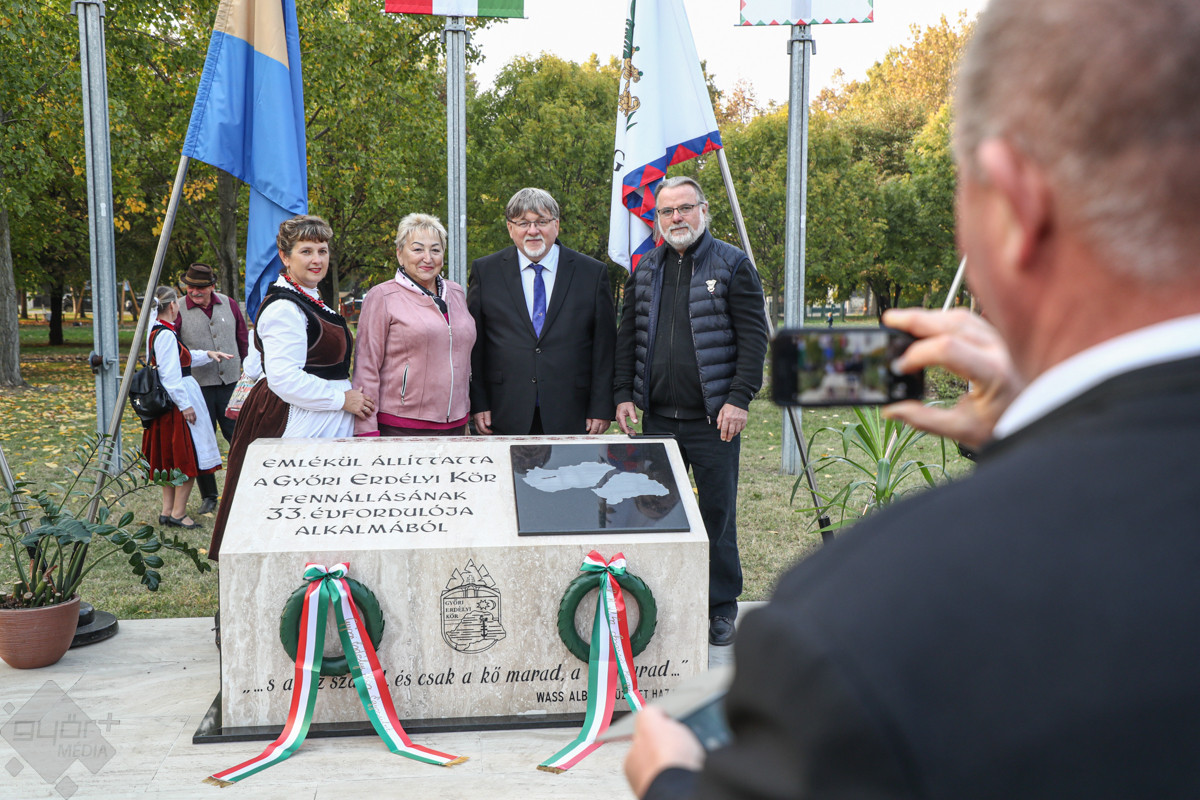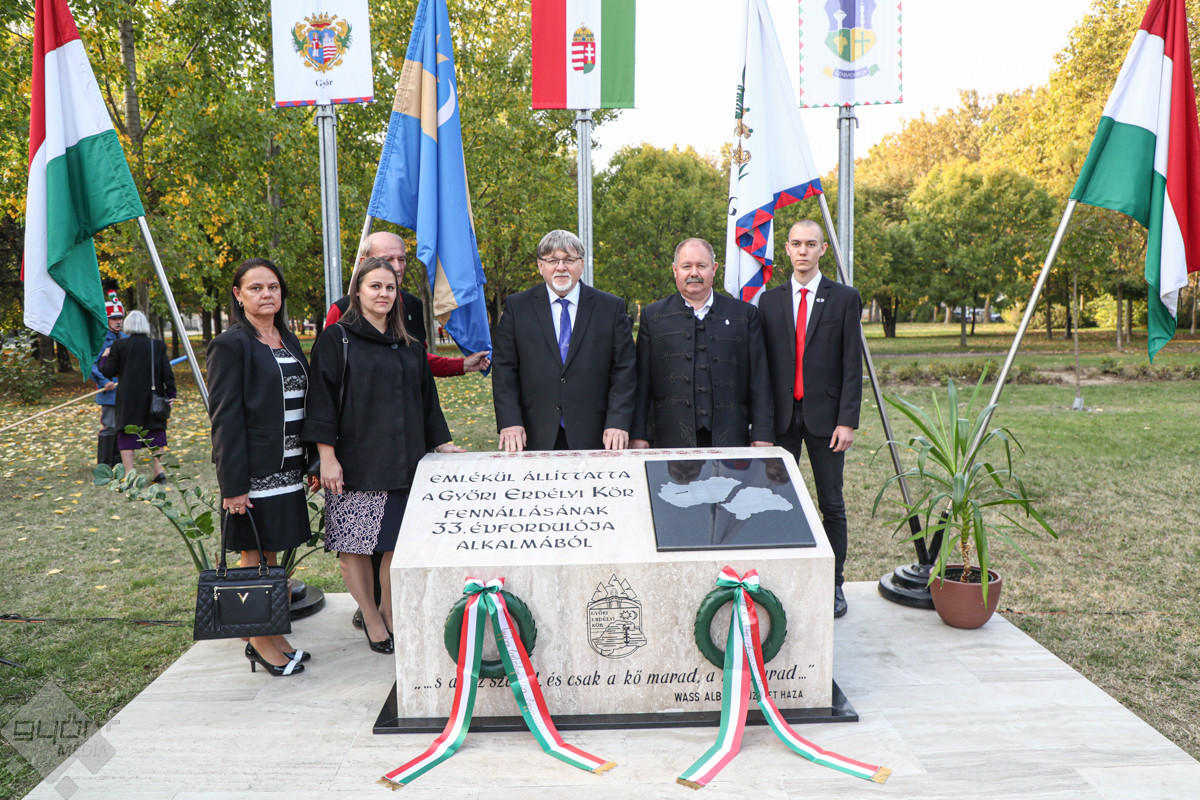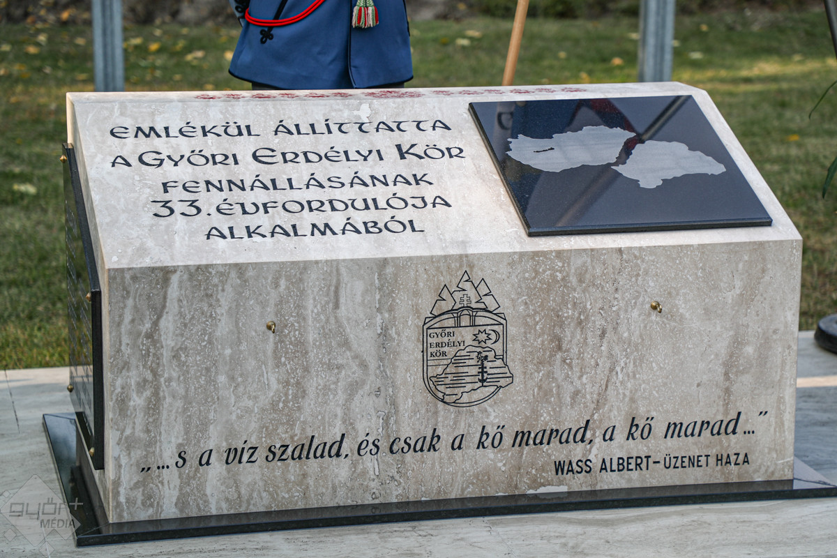 „A víz szalad és csak a kő marad, a kő marad” - hirdeti Wass Albert gyönyörű verssorát az a Rózsák terét díszítő Emlék-kő, melyet a Győri Erdélyi Kör megalakulásának 33. évében állíttatott a tagság és támogatóik.