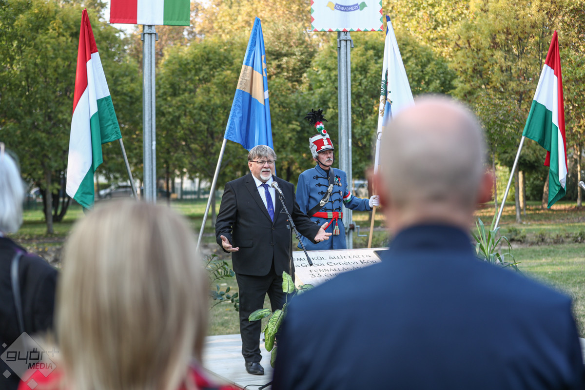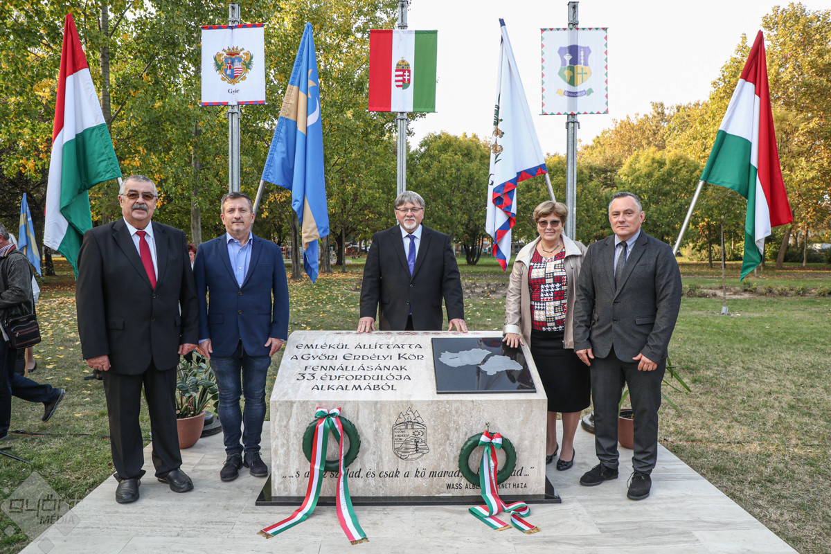 Ünnepi beszédében a szintén erdélyi gyökerekkel rendelkező dr. Dézsi Csaba András azt mondta: az erdélyi magyarság jelkép az anyaországiaknak, a kitartás, az egyenes gerinc jelképe. Hazánkat a történelemben példátlan módon megcsonkították, az Európai Unióba való belépéssel azt remélhettük, hogy a határok megszűnnek és természetes módon egybeolvadhat nemzetünk. S bár reményeink nem váltak mind valóra, városunk és az ország vezetése egyaránt nemzetben gondolkodik és cselekszik. Győrnek a közelmúltban két magyar testvérvárosa is lett, s nemrégiben a Székely himnusz iránti tiszteletből felavatták Csaba királyfi szobrát.