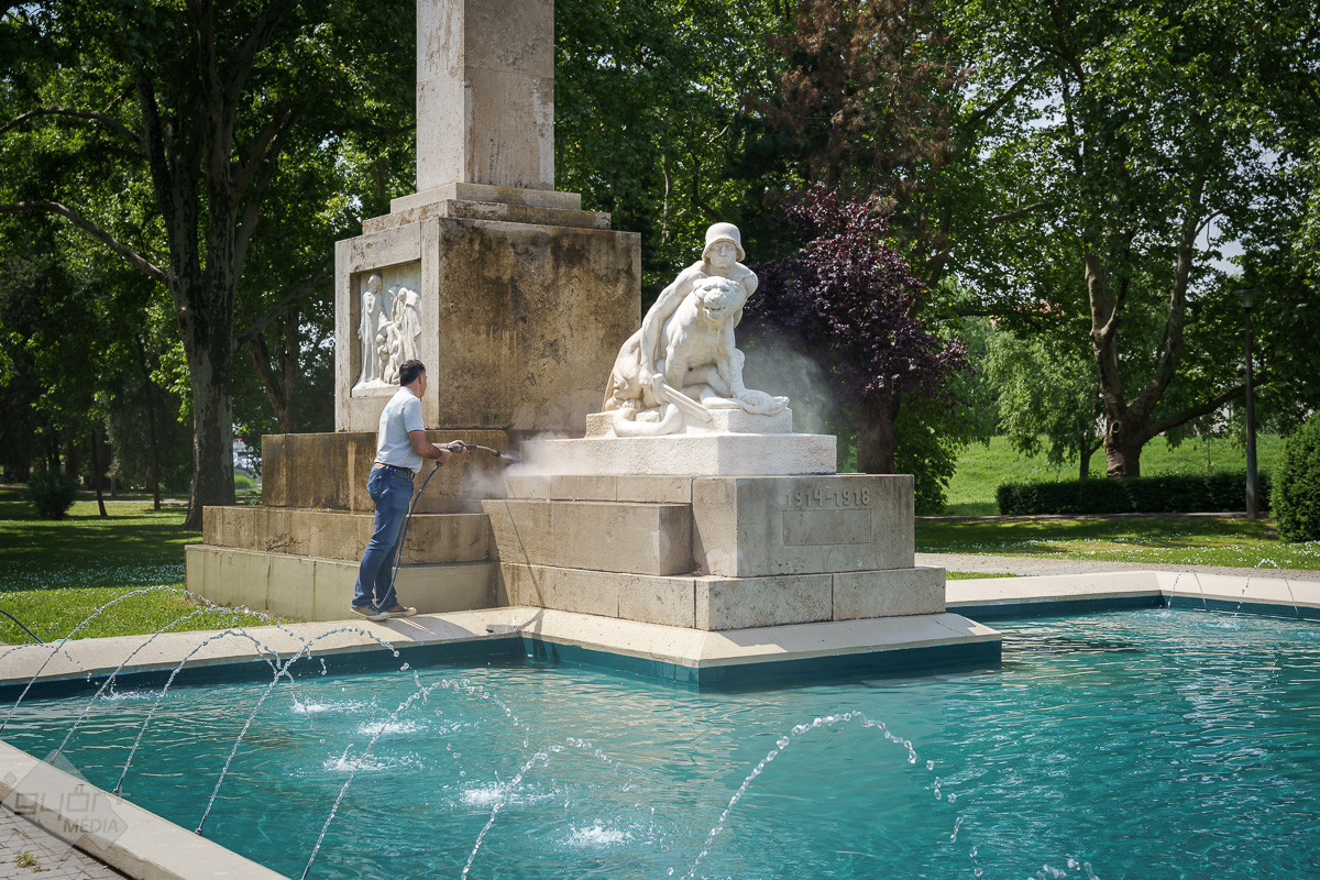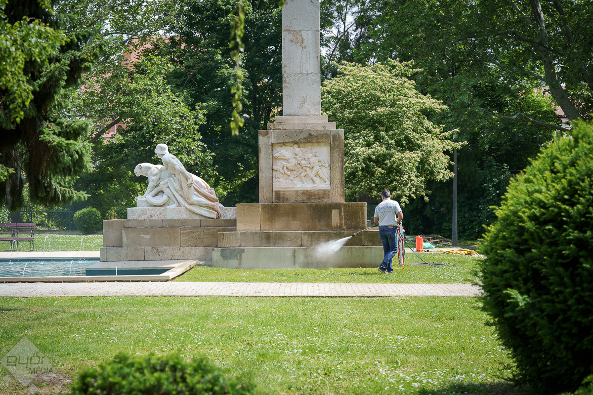 Kósa Roland arról is beszámolt a sajtó képviselőinek, hogy Pintér Bence polgármester megrendelésére a Hősi Emlékművet megtisztították.