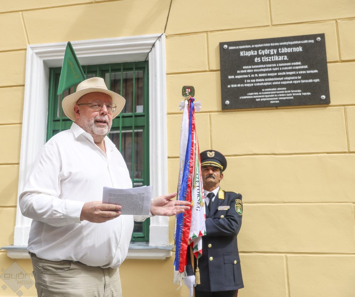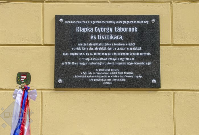 Klapka Györgynek köszönhetően pedig a szabadságharc legvégén még néhány napig a szabadság levegőjét érezhette városunk. „A Fehér bárány szállóban szállt meg Klapka a tisztjeivel, ezért avatják itt az egyesületek tagjai, dr. Dézsi Csaba András polgármester támogatásával az emléktáblát. Nagyon fontosnak tartom, hogy még egy olyan helyszín lesz Győrben, ahol a hőseinkről meg lehet emlékezni, és ezentúl Klapka Györgyről is” – emelte ki az alpolgármester.