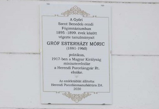 Gróf Esterházy Móric miniszterelnök porcelán emléktábláját avatták fel szombaton a Széchenyi téren álló Czuczor Gergely Bencés Gimnázium épületének falán.