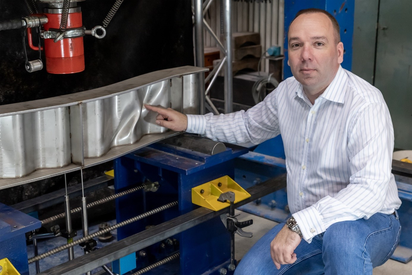 „A laboratóriumi vizsgálatok során törésteszteket, roncsolásos vizsgálatokat végzünk, hogy meghatározzuk a termékre jellemző teherbírási értékeket, amelyek megalapozzák a termék piacra vezethetőségét. A hullámgerinc és a koracél ötvözése újszerű technológiai megoldást eredményez, ezáltal a Széchenyi-egyetemen végzett vizsgálat is egyedülálló” – fogalmazott.