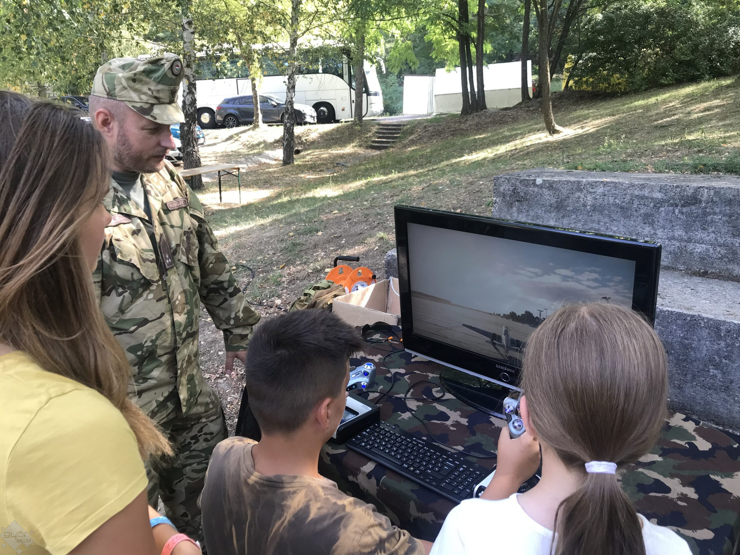Rögtönzött katonai testnevelés órát is tartottak az egyenruhások. Már a negyedik napjánál jár a Polgári Védelmi Tábor a Győrújbaráton, ahol a csütörtöki napon a gyerekek akár még azt is kipróbálhatták egy szimuláció segítségével hogyan kell katonai repülőgépet vezetni.