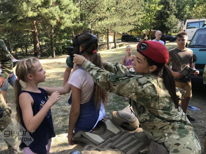 A katonai felszereléseket is fel lehetett próbálni és a harci eszközöket is bemutatták a gyerekeknek, akik többsége évek óta visszajáró vendég a táborban.