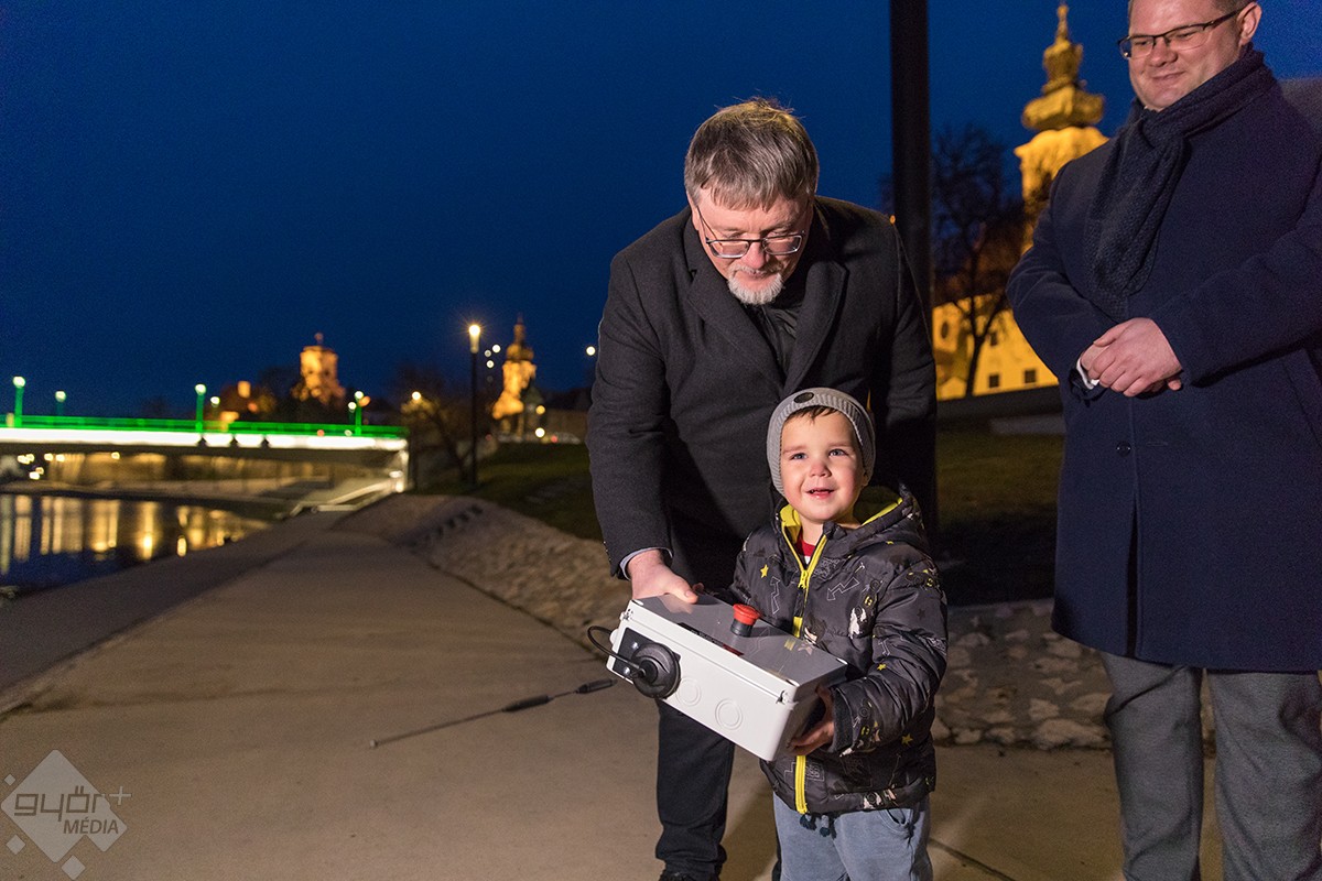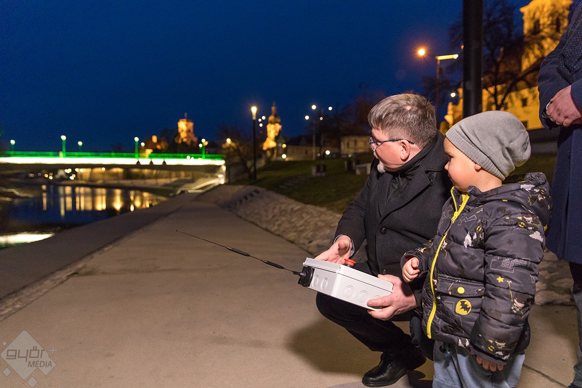 A híd fényeit egy győri óvodás, Tóth Dominik kapcsolta fel.