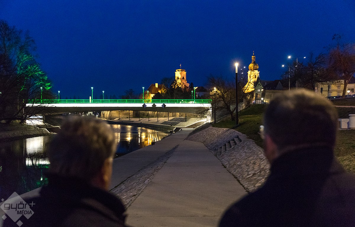 A folyók városában természetes igény, hogy a rajtuk átívelő hidak is méltó részei legyenek  a belváros hangulatának – fogalmazott dr. Dézsi Csaba András polgármester a helyszínen. Dr. Fekete Dávid önkormányzati képviselő utalt arra, hogy Győr közkedvelt környezetében, a Radó szigetre vezető úthoz kapcsolódva, háttérben a bazilikával és a püspökvárral, a nemrég felújított  Bécsi kapu tér közelében újabb látványosságot kapott a város.