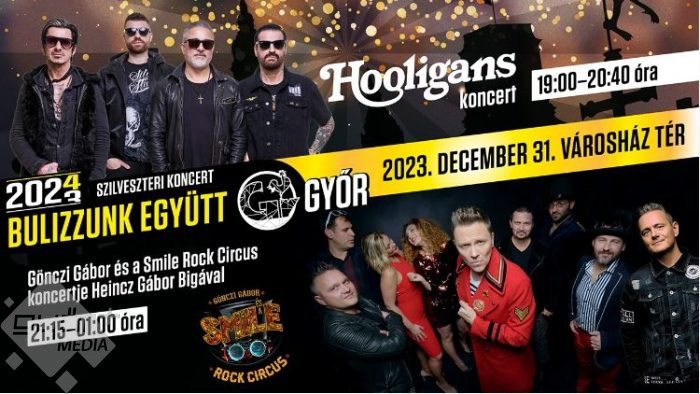 December 31-én este 19 órától pedig a győriek is tombolhatnak egyet a legnagyobb Hooligans slágerekre, hiszen a fiúk az önkormányzat szervezésében a Városháza téren adnak fergeteges koncertet, amelyre vélhetően sokan lesznek kívácsiak. Mert a Hooligansben az is jó, hogy a dallamos rockballadától kezdve az igazi zúzásig mindent megmutat a koncertjei során a repertoárból.