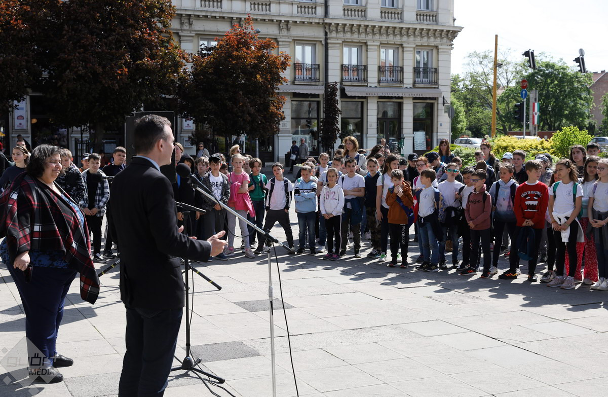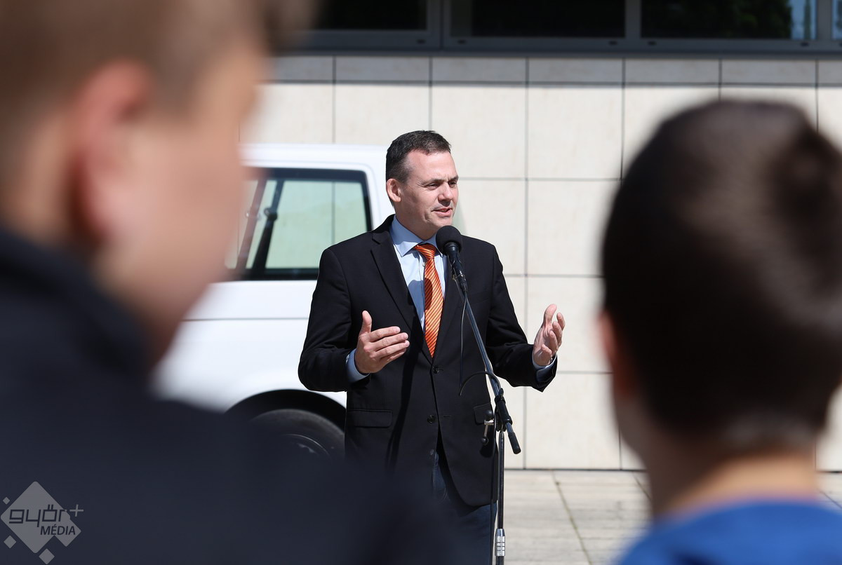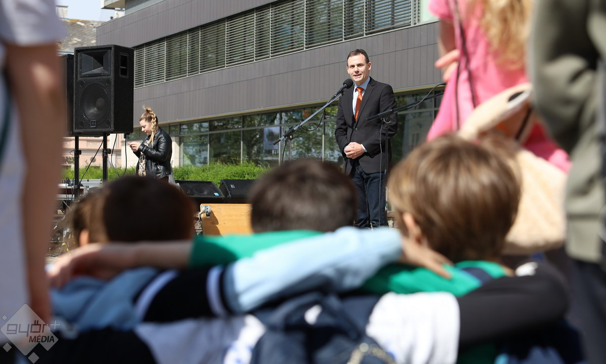 „Az Európa Napon nem azt ünnepeljük, hogy most az aktuális uniós politikai irányzat mit mond, hanem azokat a vívmányokat, amelyeket 1950-ben Robert Schuman megfogalmazott. Azt, hogy legyen egy szolidáris, békés, gazdasági alapon működő Európa, ahol az országok között nincs háború. Ezeknek a vívmányoknak az előnyeit ma is élvezhetjük. 2004 óta tagja vagyunk egy olyan közösségnek, ahol a határok átjárhatók, nem kell útlevelet felmutatni és megállni az átkelésnél, szabad a munkavállalás, s a diákok bármely uniós országban tanulhatnak. Nagyon sok minden történt, ami az életünket könnyebbé tette. Ezek megőrzéséért harcolunk. Ma is a jó dolgokra hívjuk fel a figyelmet. Azok a gyerekek, akik ma itt vannak, a közlekedésbiztonsággal kapcsolatos témában vetélkednek. Az a célunk, hogy 2050-re ne legyen halálos baleset az Európai Unió területén. Ezért persze nagyon sokat kell még dolgozni” – mondta Németh Zoltán, a Győr-Moson-Sopron vármegyei közgyűlés elnöke.