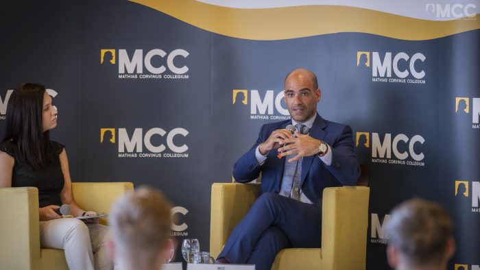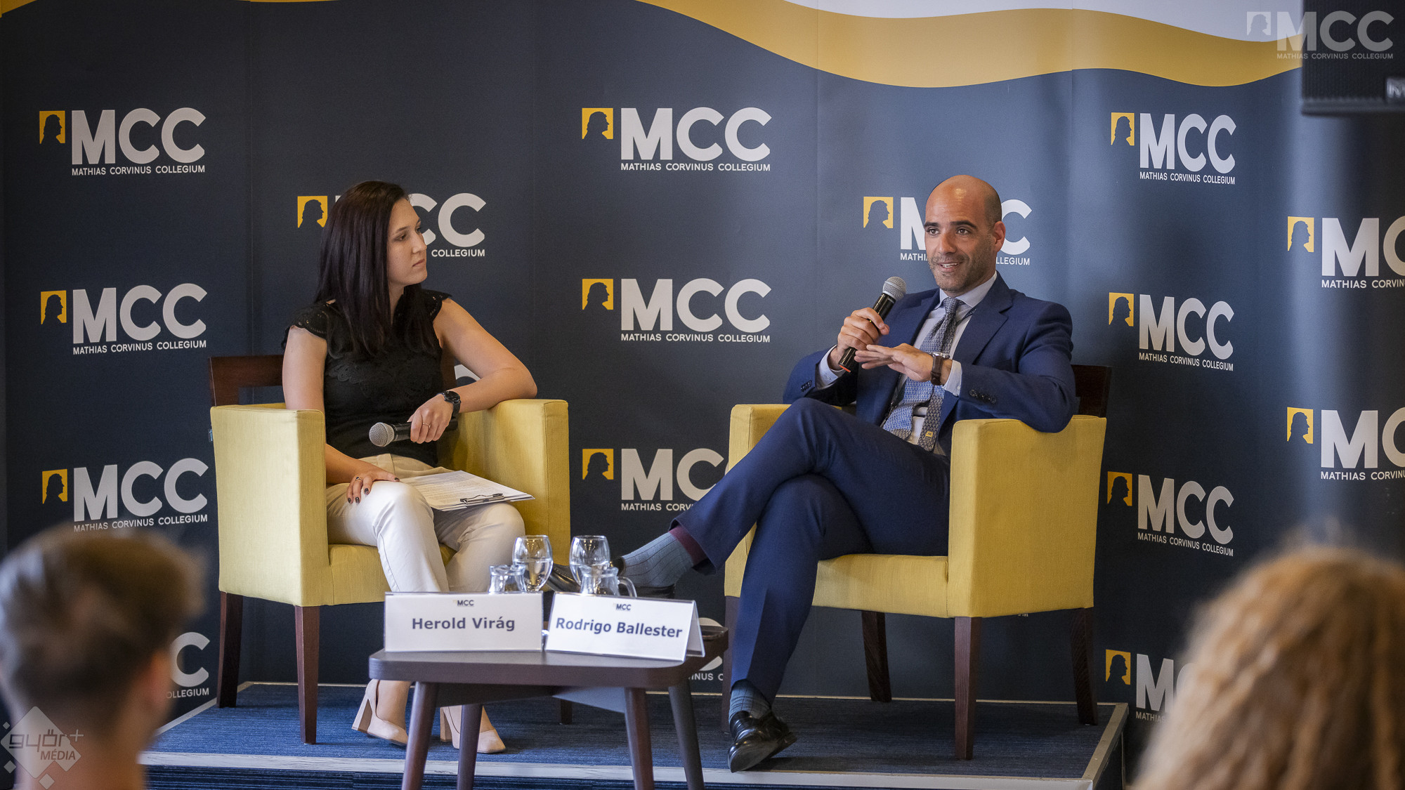 Rodrigo Ballester, az MCC Európai Tanulmányok Műhelyének vezetője az Európai Uniós források feltételességét mutatta be az MCC győri képzési központjában.