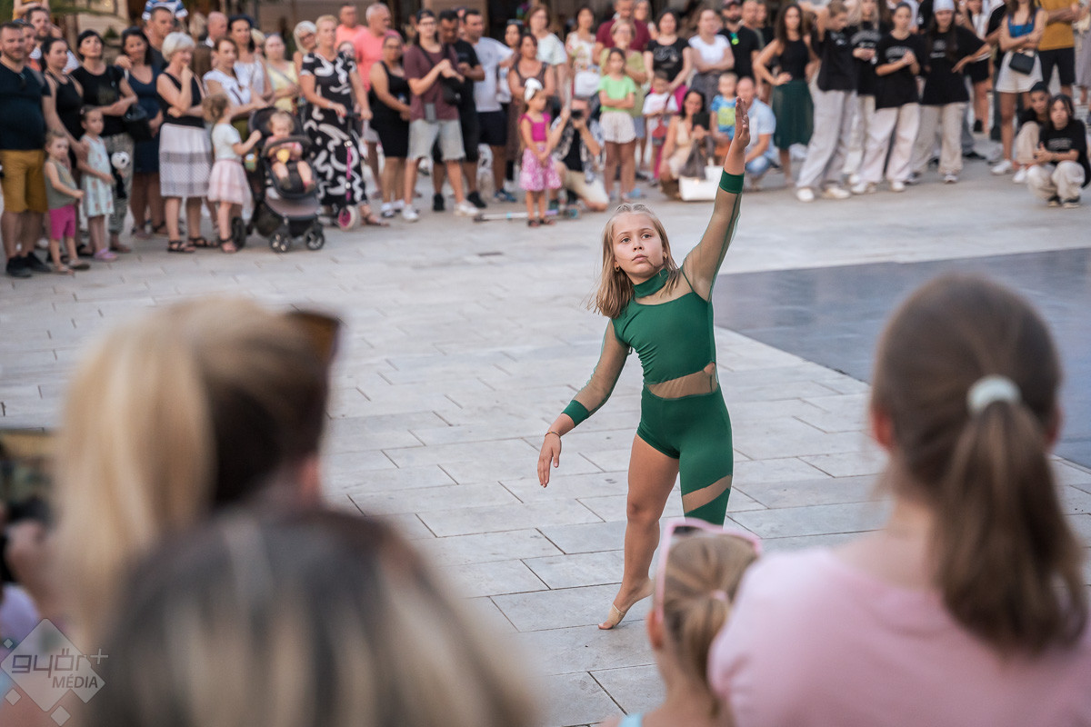 Táncbemutatók, animációk, szabad tánc és utcabál színesítette a felejthetetlen programot: szerettük, akartuk, eltáncoltuk, barátainkkal, családtagjainkkal, szerelmünkkel! A forró csók úgy égett a szánkon, mint a tér kövezete a talpunk alatt, a gyönyörű, búcsúzó győri nyáron… Várjuk a következőt…