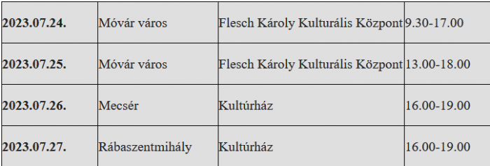 Az alábbiakban közöljük a győri Regionális Vérellátó Központ és a Magyar Vöröskereszt területi szervezeteinek jövő heti programját.