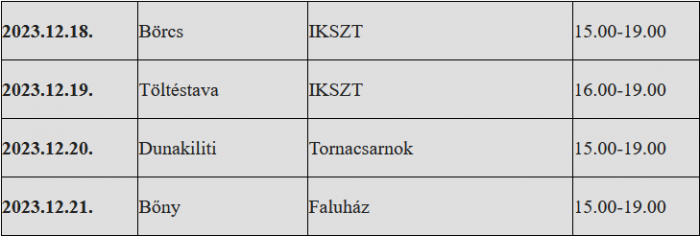 A megadott programon kívül az alábbi nyitva tartásban várjuk a Regionális Vérellátó Központban a vért adni szándékozókat (Győr, Magyar u. 8.):