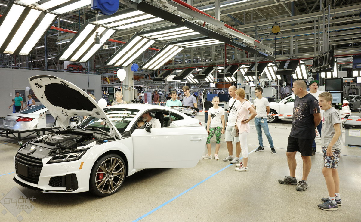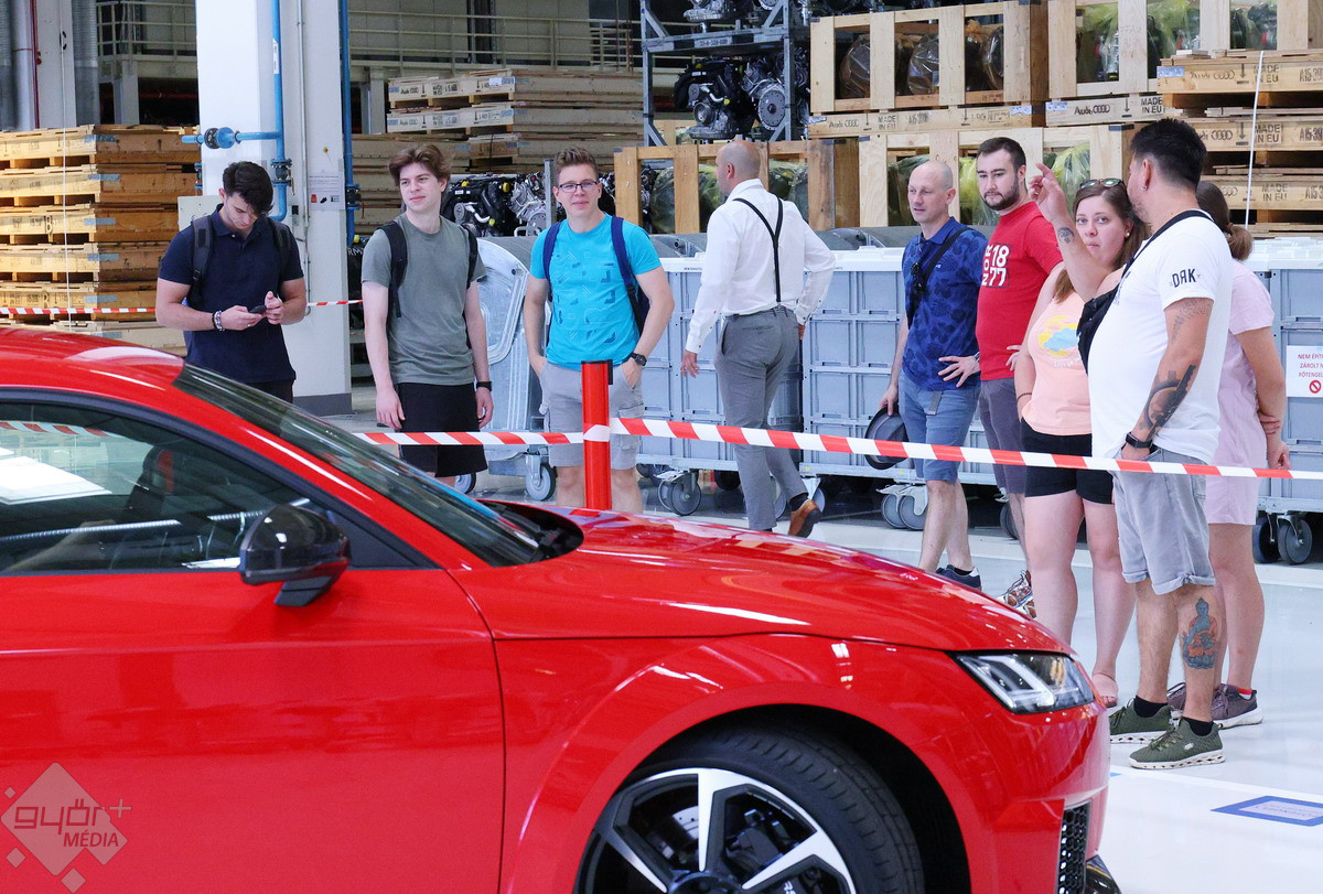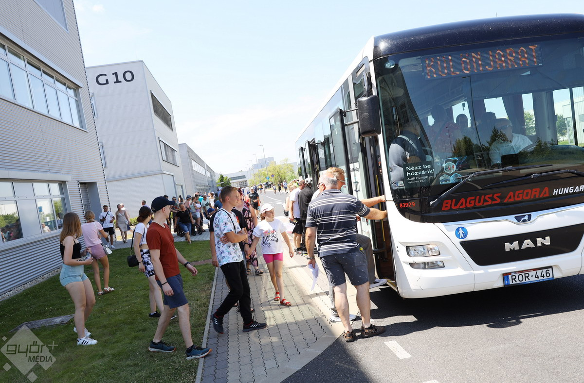 A kijutást és a gyár területén belül az eligazodást buszok segítik, aki pedig most kedvet kapott, annak még nem késő. Nagyjából fél 5-ig még megnézhetik mit is rejt az Audi Hungaria.