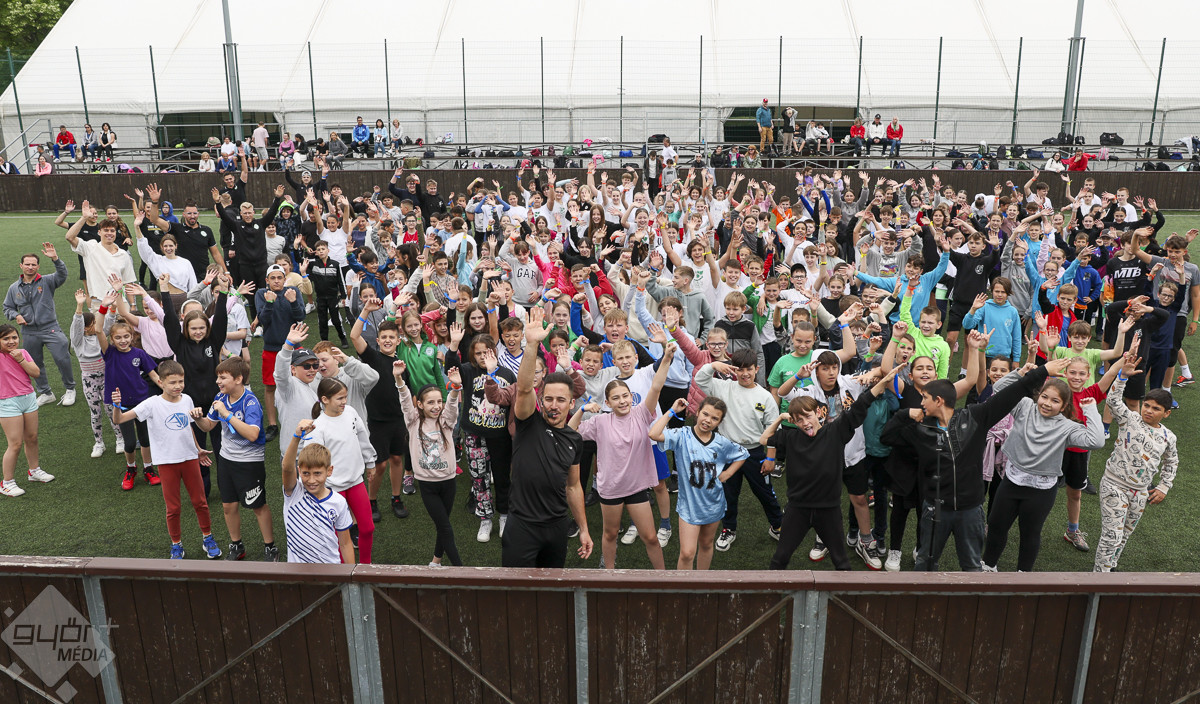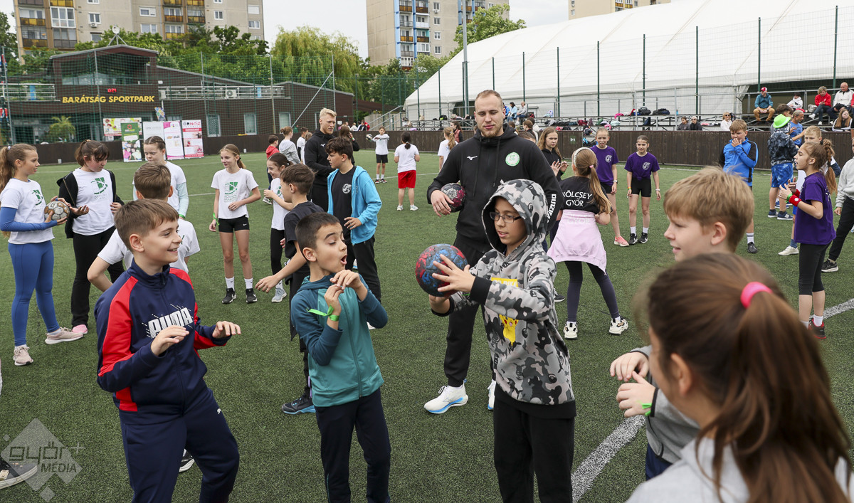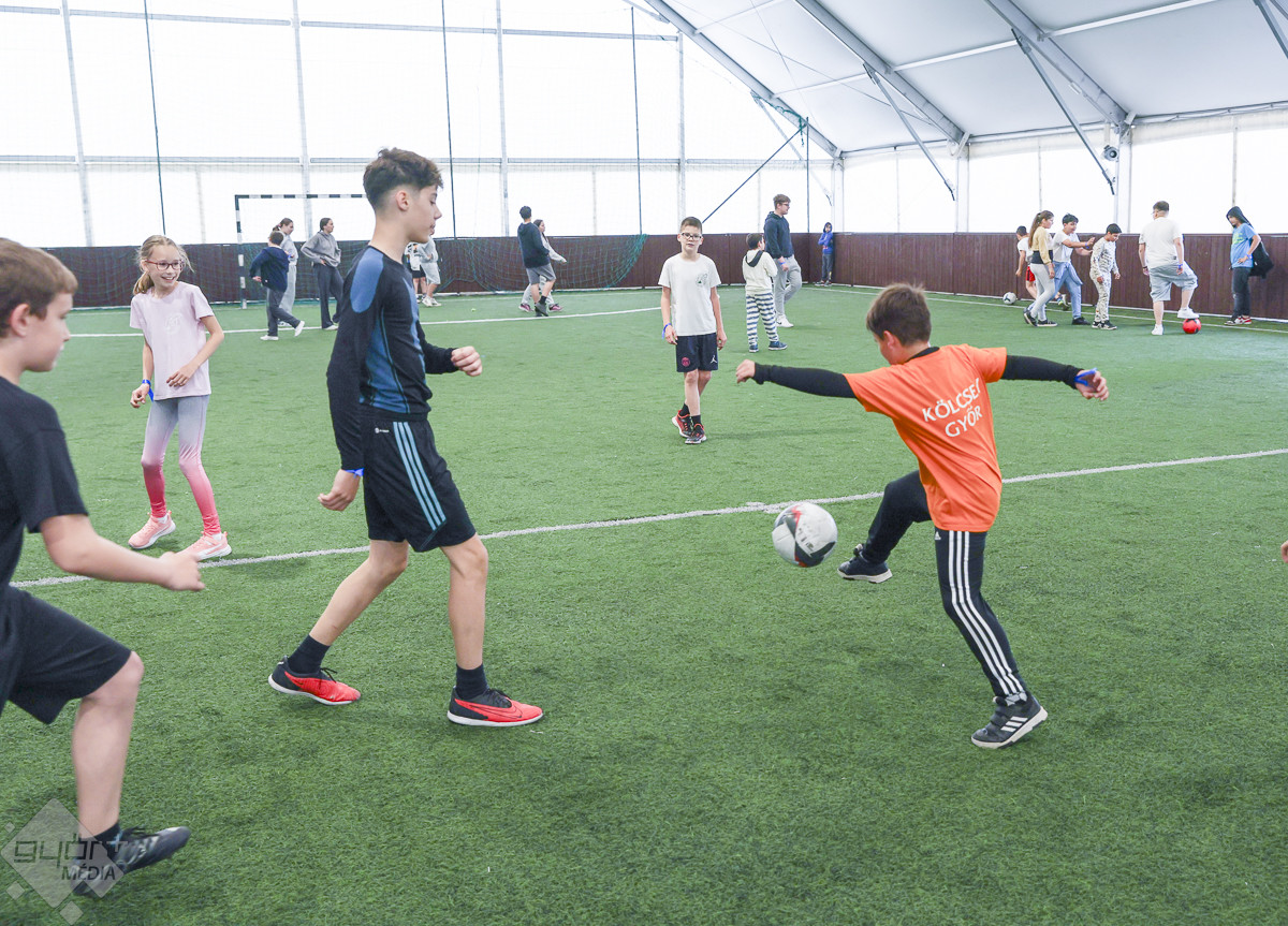 Háromszáz gyerek, kilenc iskolából érkezett a Győr+ Média által szervezett jótékonysági sportnapra, ahol a fiatalok focizhatnak, kézilabdázhatnak, kosárlabdázhatnak és asztali-teniszezhetnek délután két óráig.