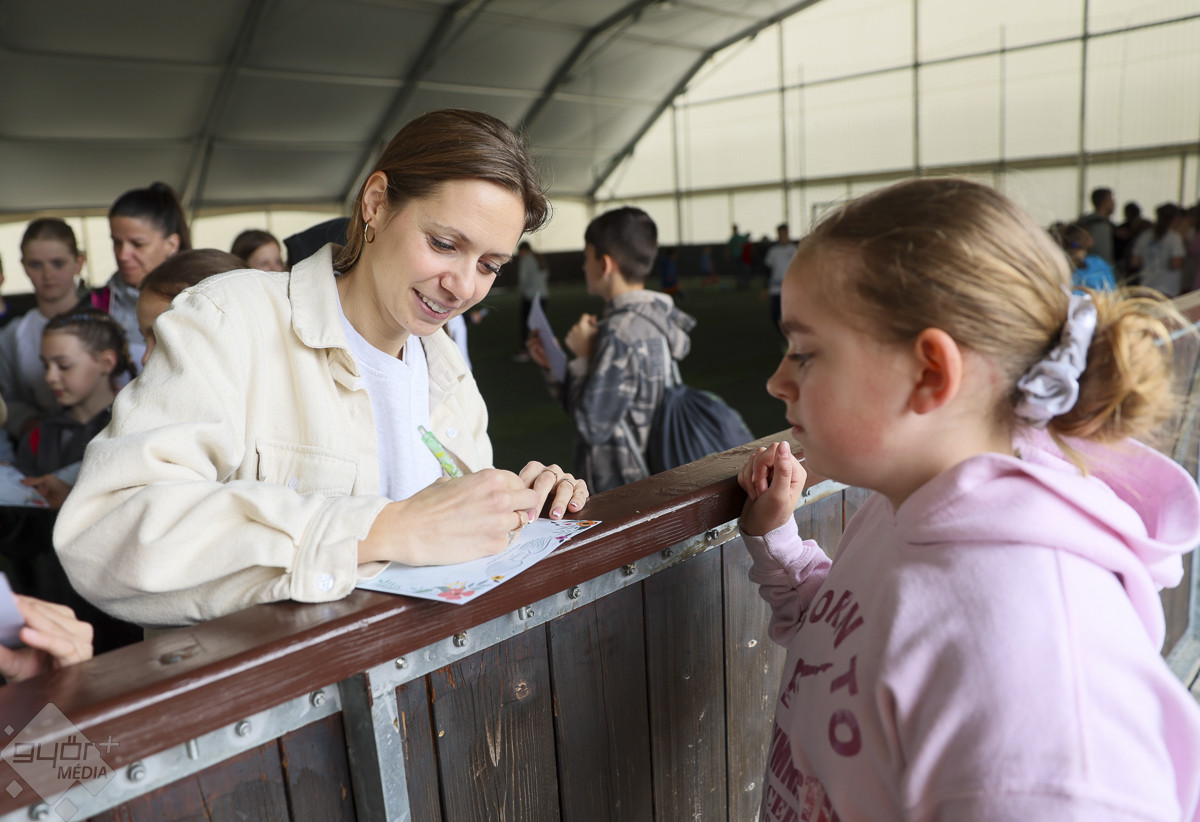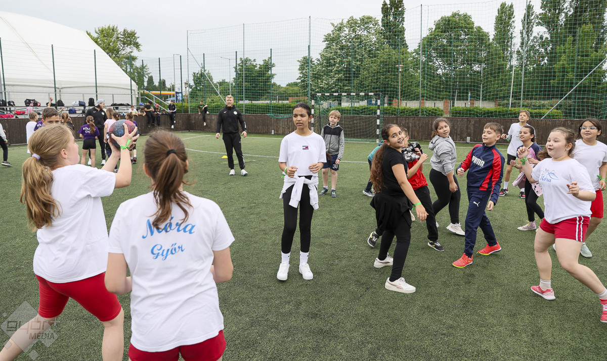 Németh Boglárka a Győr+ Televízió szerkesztője a rendezvény egyik főszervezője elmondta, ez a harmadik ilyen esemény, melyet a Győr+ Média rendez. „Elsőként két évvel ezelőtt karácsony előtt félszáz, gyermekotthonban élő gyermeket sportoltattunk meg, ők focizhattak, kézilabdázhattak. A mozgás mellett hatalmas öröm volt számukra ismert sportolókkal találkozni. Tavaly decemberben aztán a Győr+ Angyalai az Olimpiai Sportparkba vártak kétszáz gyereket, ahol már a kosárlabdát és a tornát is kipróbálhatták. Nagyon sikeres rendezvény volt. Arra gondoltunk, hogy jó időben, tavasszal, a szabad levegőn is sportoljanak a fiatalok, ezért szerveztük meg a mai sporteseményt. Háromszáz gyerek jött el és jó látni, hogy jó kedvűen sportolnak, hogy örömöt tudunk csalni az arcukra. Itt olyan sportolókkal találkozhatnak, akikkel eddig még személyesen nem volt módjuk és az is lehet, közülük lesz valaki a példaképük és miatta fognak rendszeresen sportolni – hangsúlyozta Németh Boglárka.