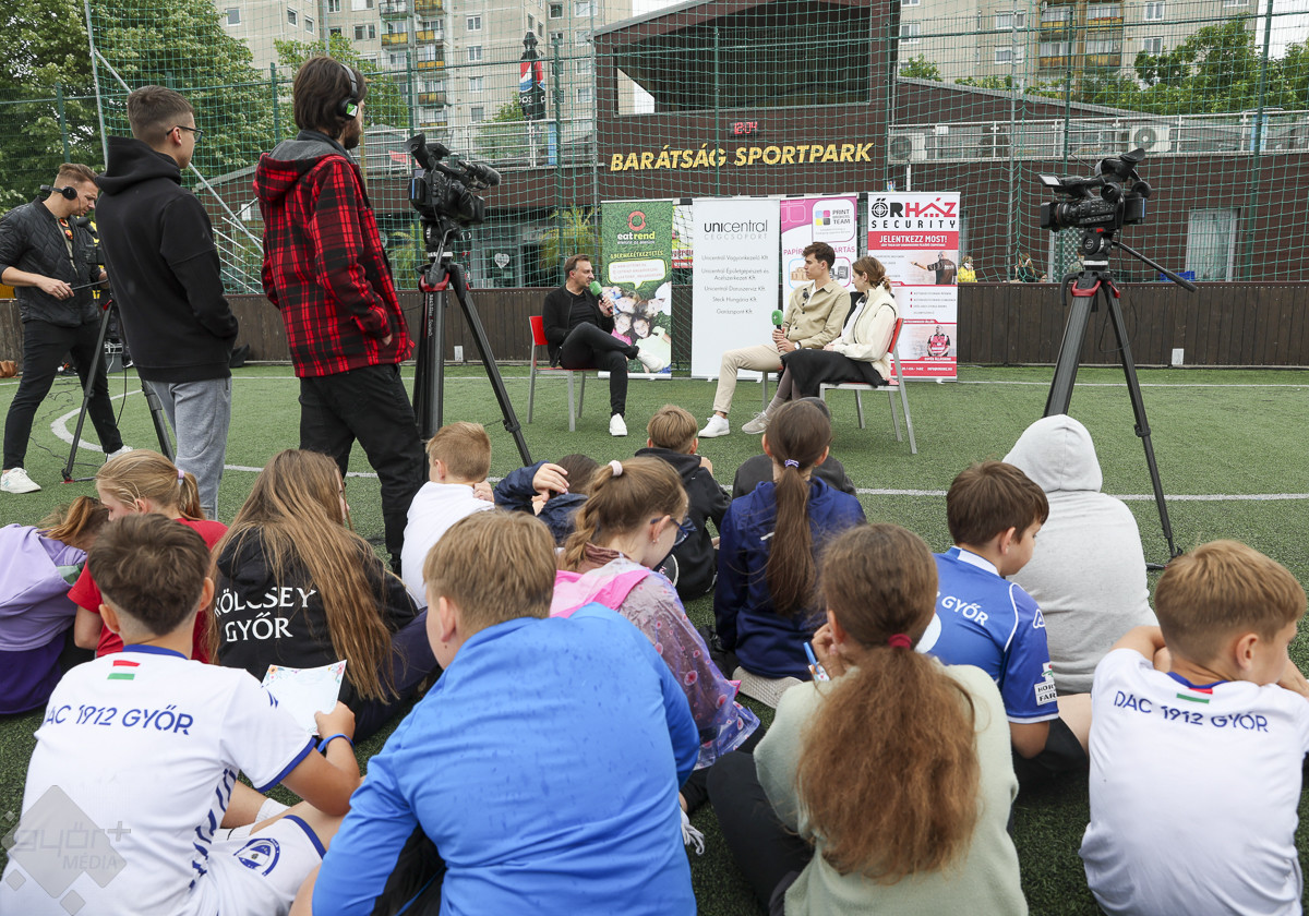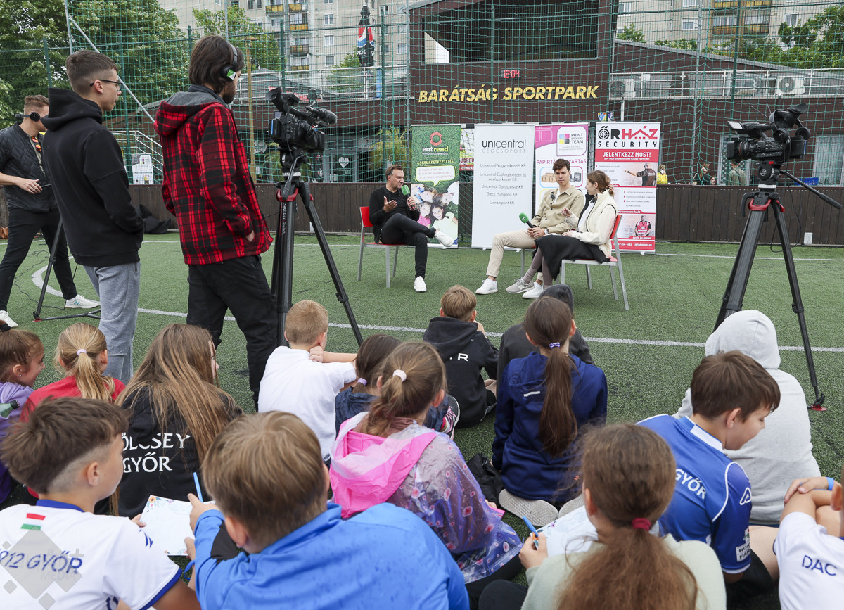 A Barátság Sportparkba kitelepült a Győr+ Rádió is, ahol kollégáink a rendezvény résztvevővel, a támogatókkal, a sportolókkal készítenek izgalmas riportokat, így többek között Szalainé dr. Németh Annamáriával a Győr-Szol Zrt. vezérigazgató-helyettesével, akik az esemény főtámogatói, szót kapott Iván Gábor a Győr Plusz Média Zrt. marketingvezetője. Nagy Roland műsorvezető kollégánk pedig a sportolókat faggatja.