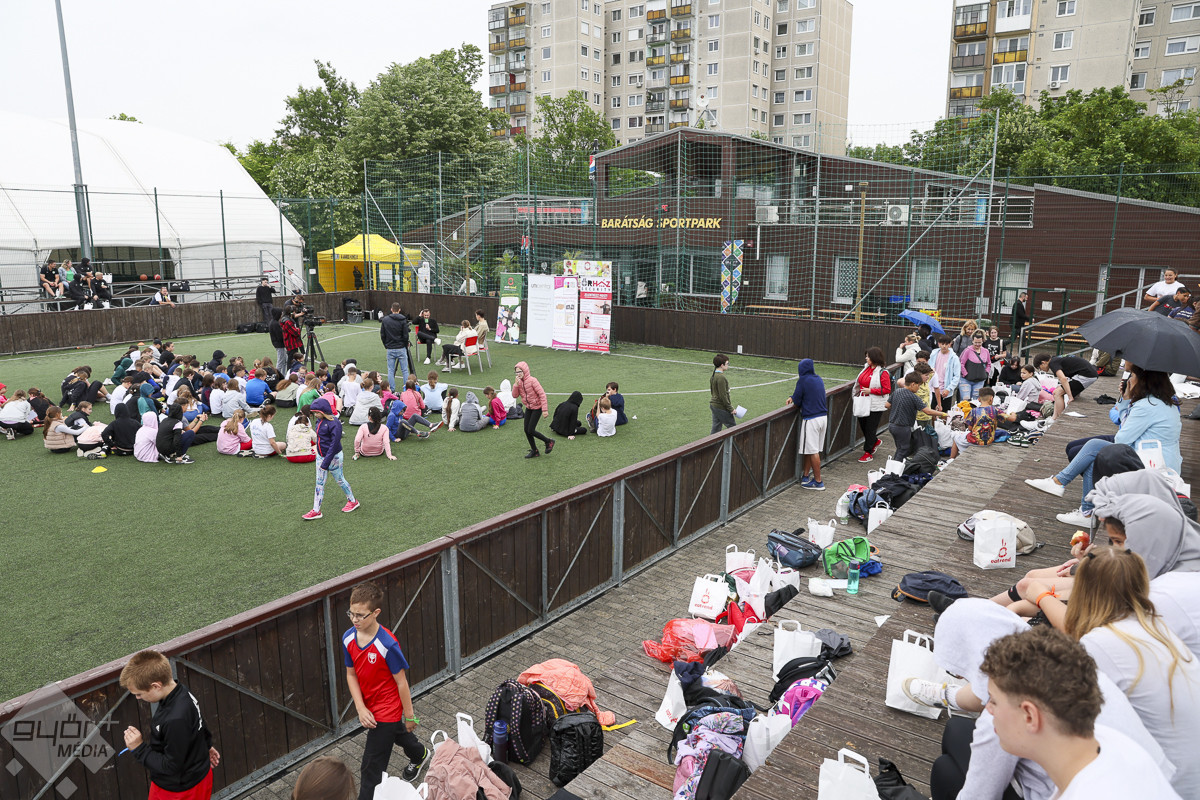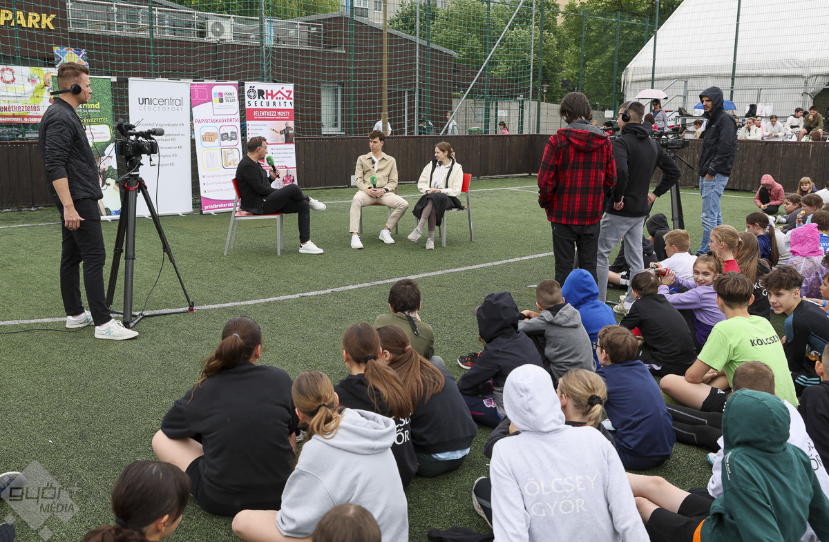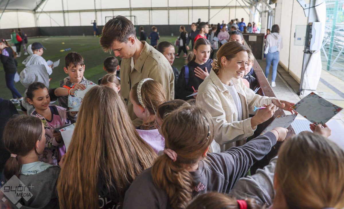 A Győr + Média ismét jótékony sportnapra várta a diákokat a Barátság Sportparkba pénteken délelőtt. A borongós időjárás ellenére a hangulat fantasztikus volt, a gyerekek élvezték a sportolási lehetőségeket, amelyben ismert sportolók segítették őket. A jó hangulatról a Győr+ Rádió gondoskodott.