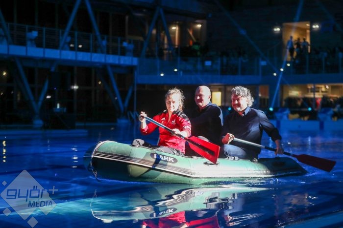 Humorban és meglepetésben sem volt hiány, amiről az est két műsorvezetője, Bősze Ádám és ifj. Knézy Jenő gondoskodott. A tavalyihoz hasonlóan a házigazda Győri Filharmonikus Zenekar tagjai az idén is „alkalomhoz” öltöztek, ahogy Berkes Kálmán karnagy is fürdőköpenyben és szalmakalapban emelte vezényléshez a karmesteri pálcát. A zenei repertoár szinte kivétel nélkül a vízről szólt, A Karib tenger kalózai című film zenéjére stílusosan gumicsónakban érkezett a két műsorvezető, akik biztonságban érezhették magukat, hiszen Csay Renáta hússzoros maraton kajak világbajnokkal evezve simán „partot”, azaz színpadot értek. A zenekar Felfedezések jegyében meghirdetett évadjának mostani előadása is telt ház előtt kínálta a felfedezésre érdemes zeneműveket és a szünetben a magyar úszósport legkiválóbbjait a nézők is „felfedezhették” maguk között.