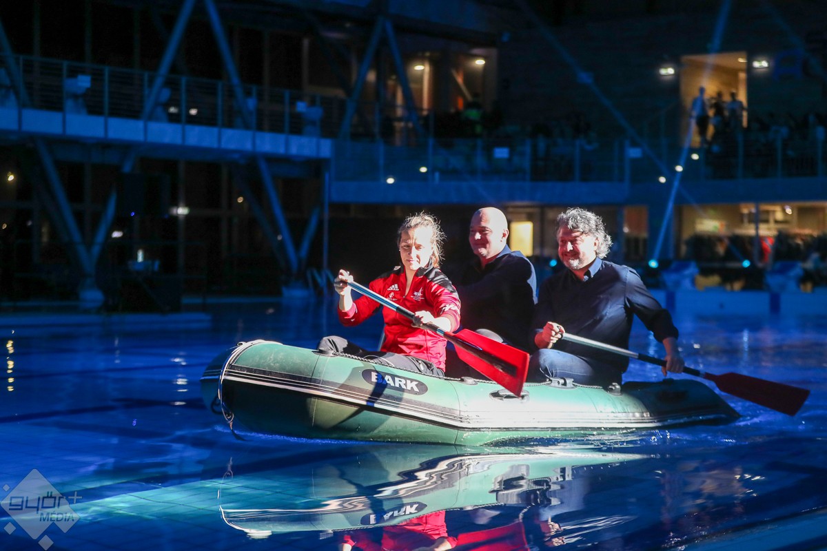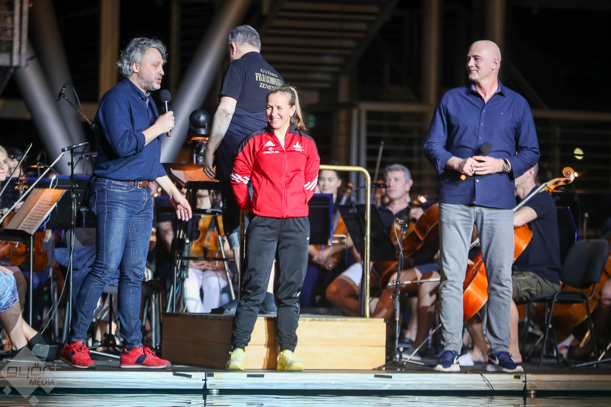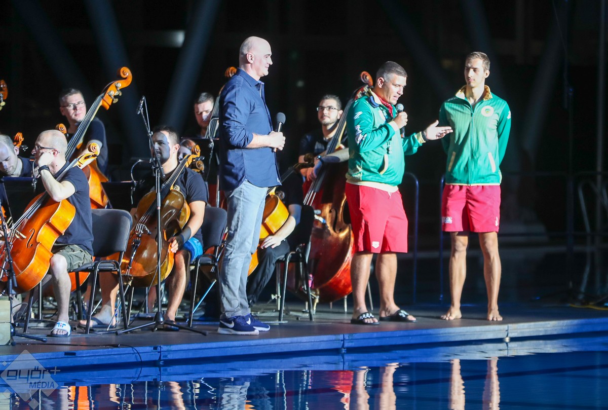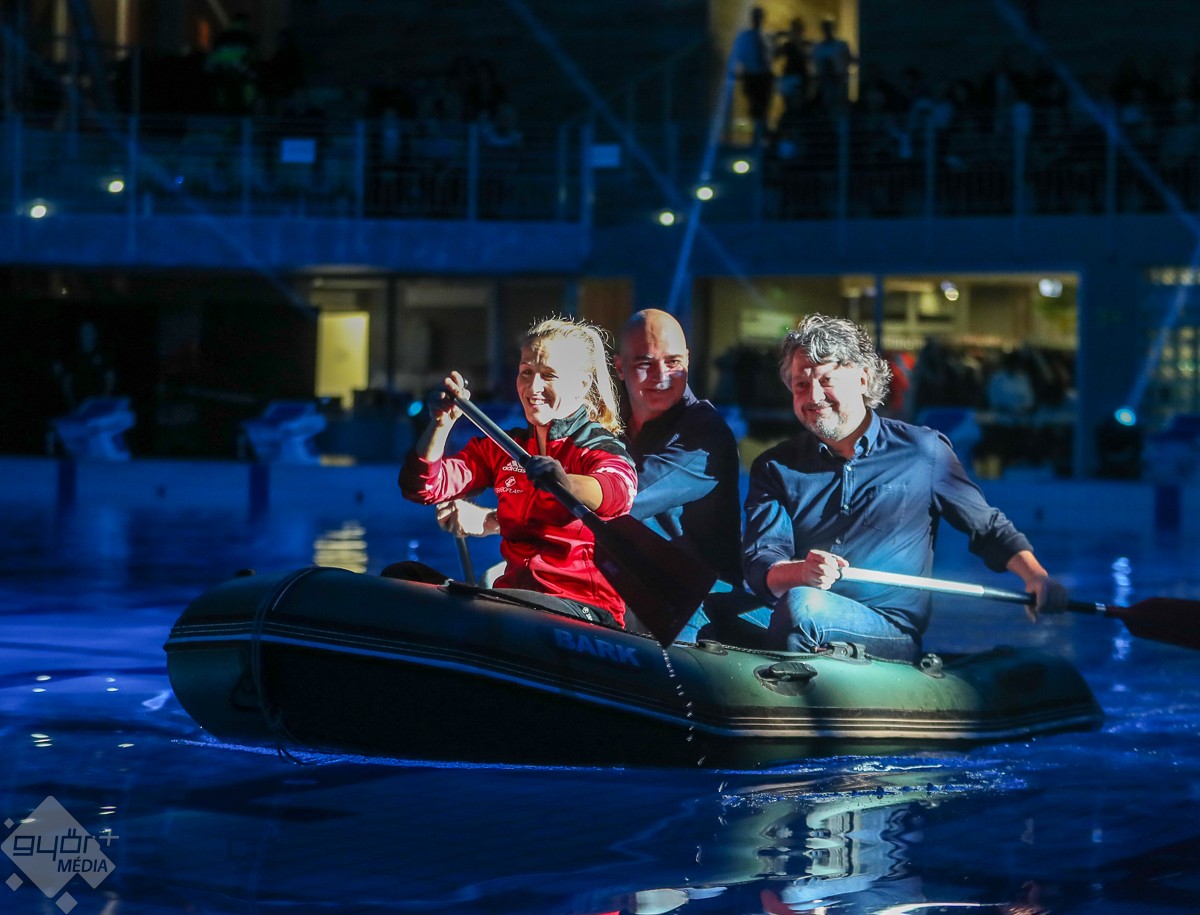 Humorban és meglepetésben sem volt hiány, amiről az est két műsorvezetője, Bősze Ádám és ifj. Knézy Jenő gondoskodott. A tavalyihoz hasonlóan a házigazda Győri Filharmonikus Zenekar tagjai az idén is „alkalomhoz” öltöztek, ahogy Berkes Kálmán karnagy is fürdőköpenyben és szalmakalapban emelte vezényléshez a karmesteri pálcát. A zenei repertoár szinte kivétel nélkül a vízről szólt, A Karib tenger kalózai című film zenéjére stílusosan gumicsónakban érkezett a két műsorvezető, akik biztonságban érezhették magukat, hiszen Csay Renáta hússzoros maraton kajak világbajnokkal evezve simán „partot”, azaz színpadot értek. A zenekar Felfedezések jegyében meghirdetett évadjának mostani előadása is telt ház előtt kínálta a felfedezésre érdemes zeneműveket és a szünetben a magyar úszósport legkiválóbbjait a nézők is „felfedezhették” maguk között.