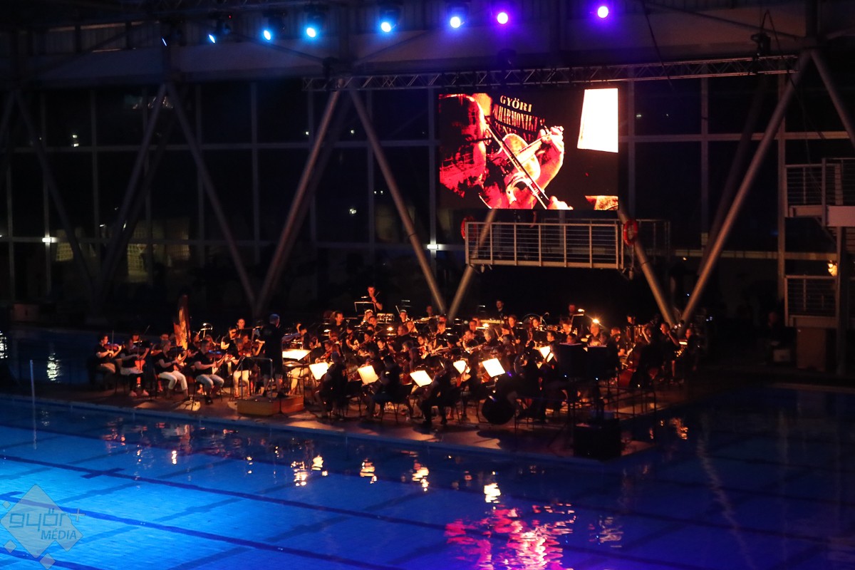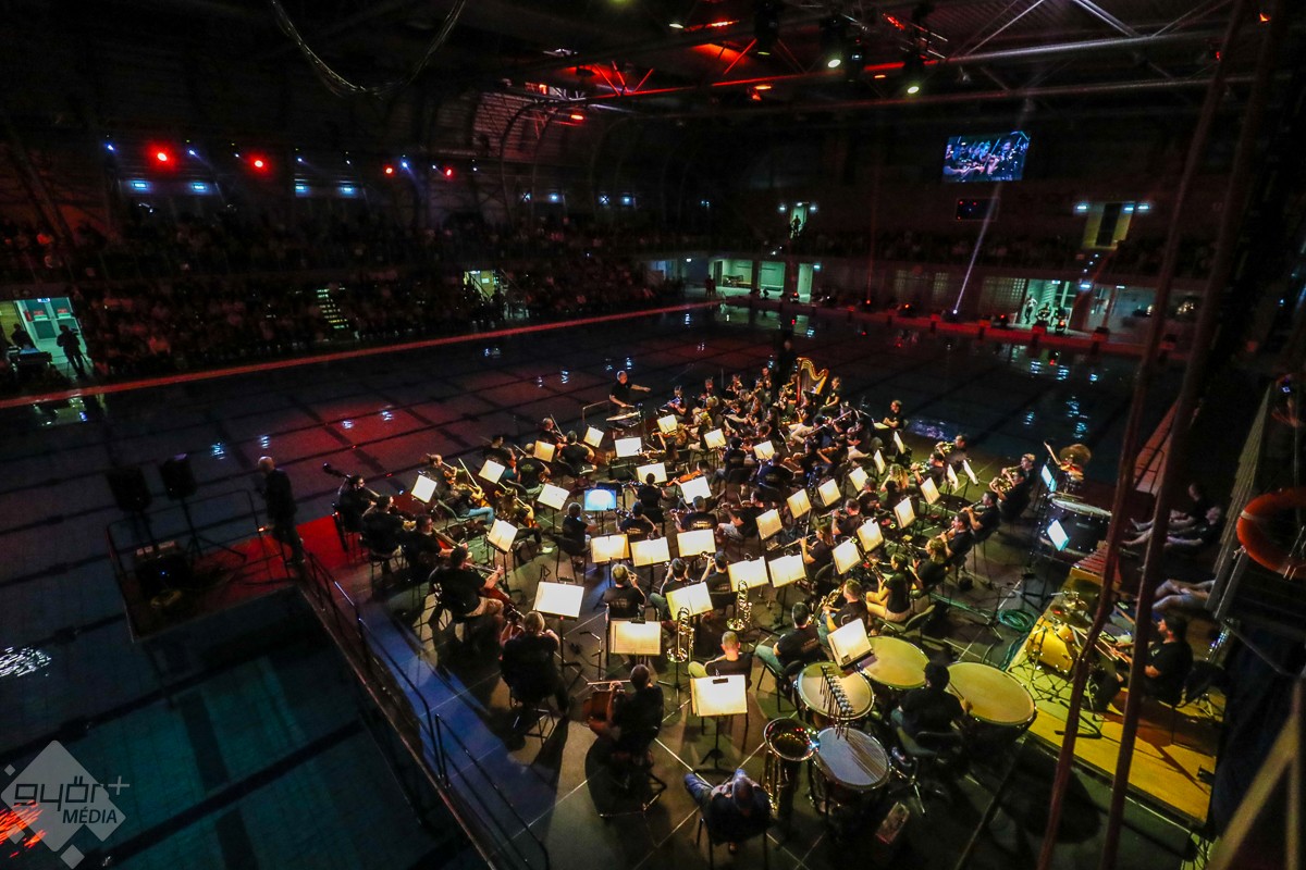 Tavaly született az uszodában tartott farsangi koncert ötlete, amelyet Petrov Iván, a győri úszók vezetője és Fűke Géza, a Győri Filharmonikus Zenekar igazgatója meg is valósított. Idén már második alkalommal szóltak a népszerű dallamok a különleges helyszínen, a medence fölé épített színpad, az uszoda kiváló akusztikája biztosította a felejthetetlen hangzást. A rendhagyó koncert hangulatát tovább emelték a meghívott vendégek, akik a vízben és a színpadon nyújtottak felejthetetlen élményt a közönségnek.