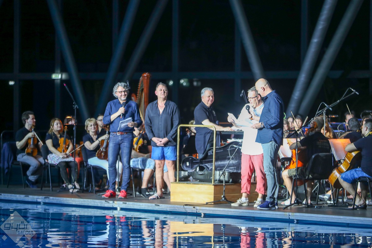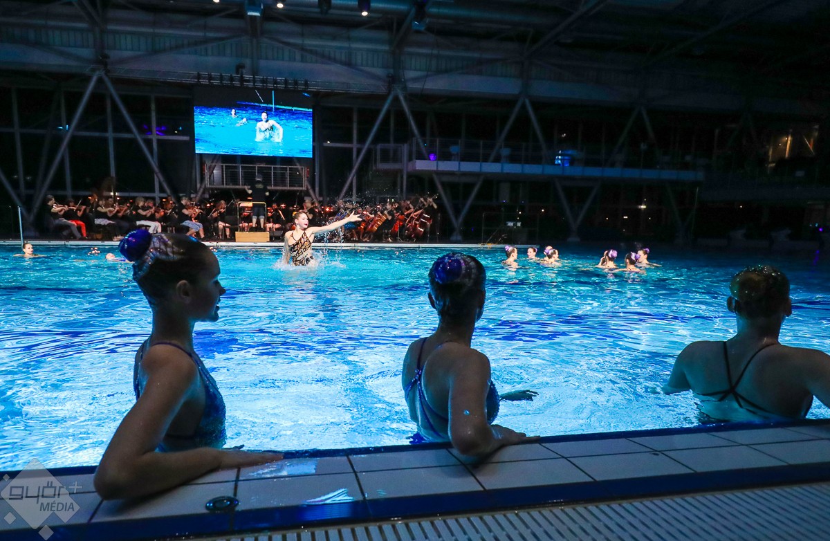 Humorral átszőtt világcsúcskísérletnek is tanúi lehettek a jelenlévők, Petrov Iván úszóedző, a koncert megálmodója és Bukor Ádám, a Felvidékről családjával Győrbe települt és igazolt világklasszis uszonyos úszó mérte össze tudását a vízben. Miközben Csajkovszkij Diótörő című művéből játszott részletet a zenekar, a rajtkövekről elstartoltak a Győri Úszó Sport Egyesület tagjai, úszott a medencében a legfiatalabb négy és fél éves kislány is, szelték a habokat a magyar válogatott tagjai, és nagy taps fogadta a sportág kiválóságát, Toni Rockyt, azaz Patkás Tamás nyílt vízi paraúszót is.