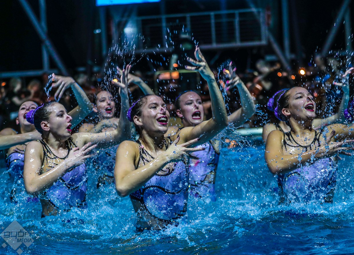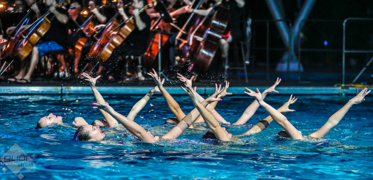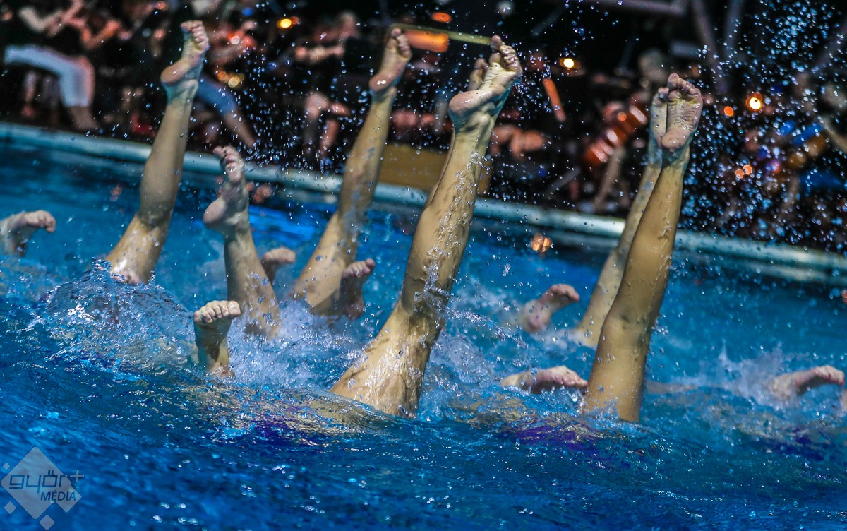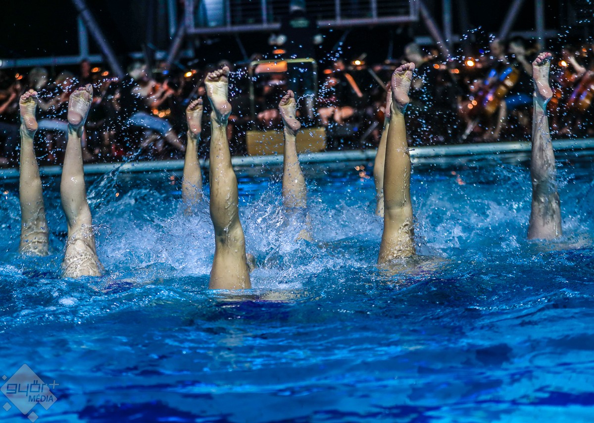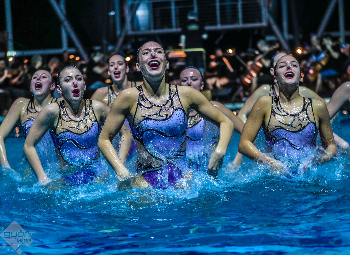 A magyar szinkronúszó válogatott sportolói a Két lépés a pokolból című film zenéjére mutattak be „pokoli” jó koreográfiát, és egy laikus számára pokoli nehéznek tűnhet megtanulni a látott vízitáncot. Händel Vízizenéje ismételten nem csak a fülnek nyújtott élvezetet, ugyanis a medence partján a Győri Balett tagjai az alkalomhoz illendő „jelmezben”, fürdőruhában táncoltak. Majd jeges utazásra vitte a zenekar a közönséget, a Titanic című film világhírű taktusai megmutatták: „Azért a víz az úr!”