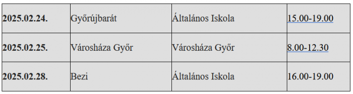 A megadott programon kívül az alábbi nyitva tartásban is várják a Regionális Vérellátó Központban a vért adni szándékozókat (Győr, Magyar u. 8.):